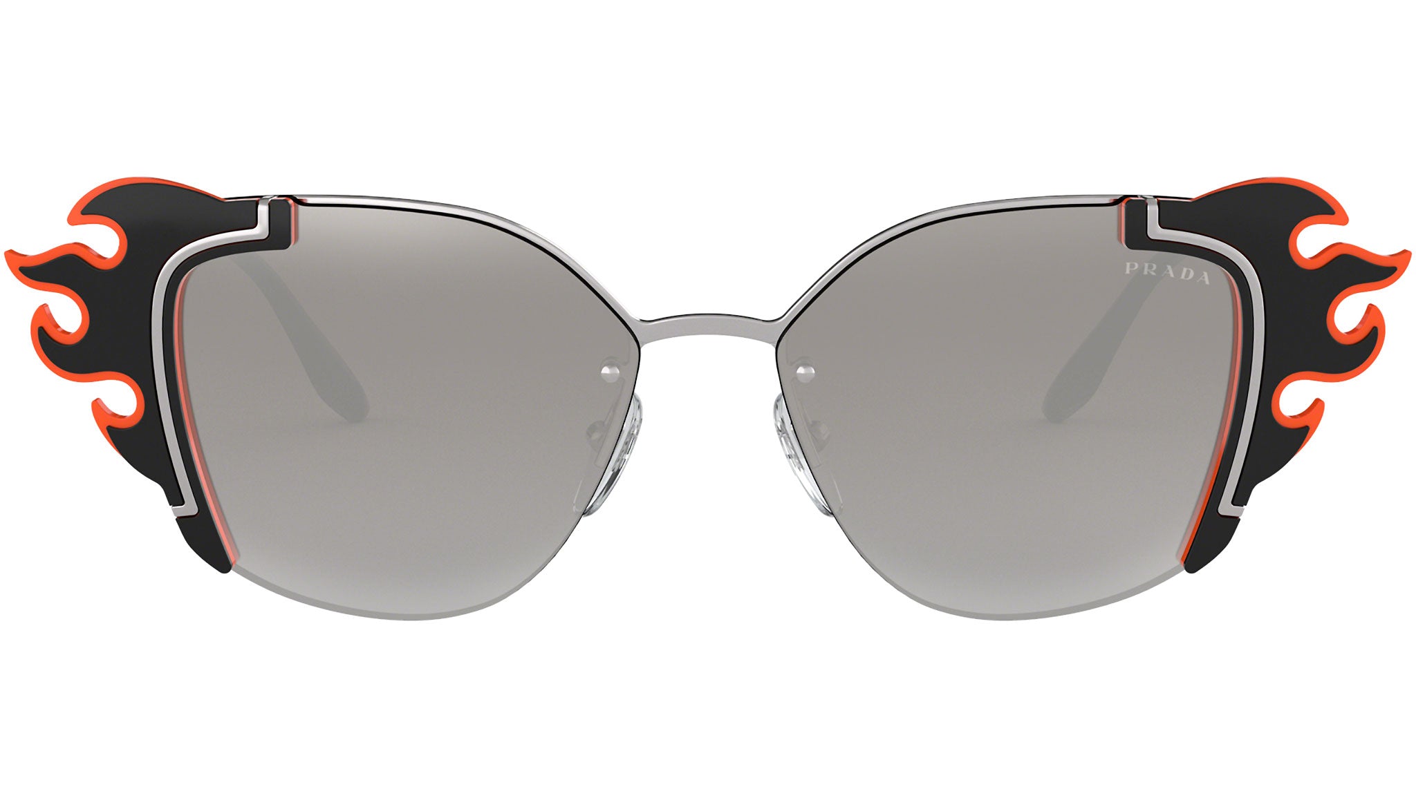 Prada sunglasses model PR 59VS, silver and black orange frame variant, color code 4275O0 with gradient grey mirror silver lens. Prada represents the best of Italian culture and tradition. It is one of the most innovative, prestigious and widely recognized brands in the fashion and luxury goods industries, with a keen attention to details and new trends.