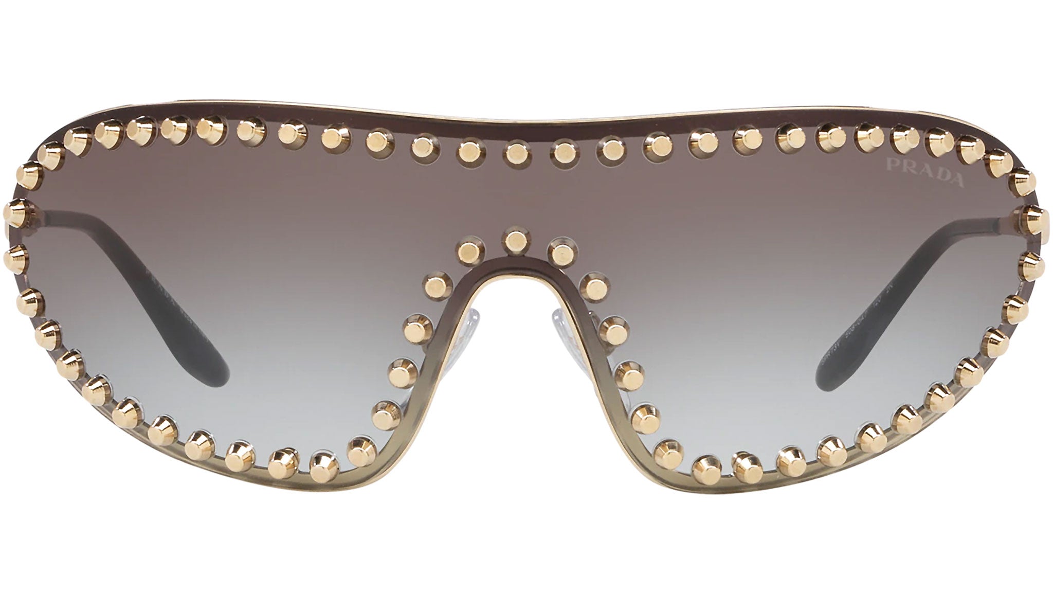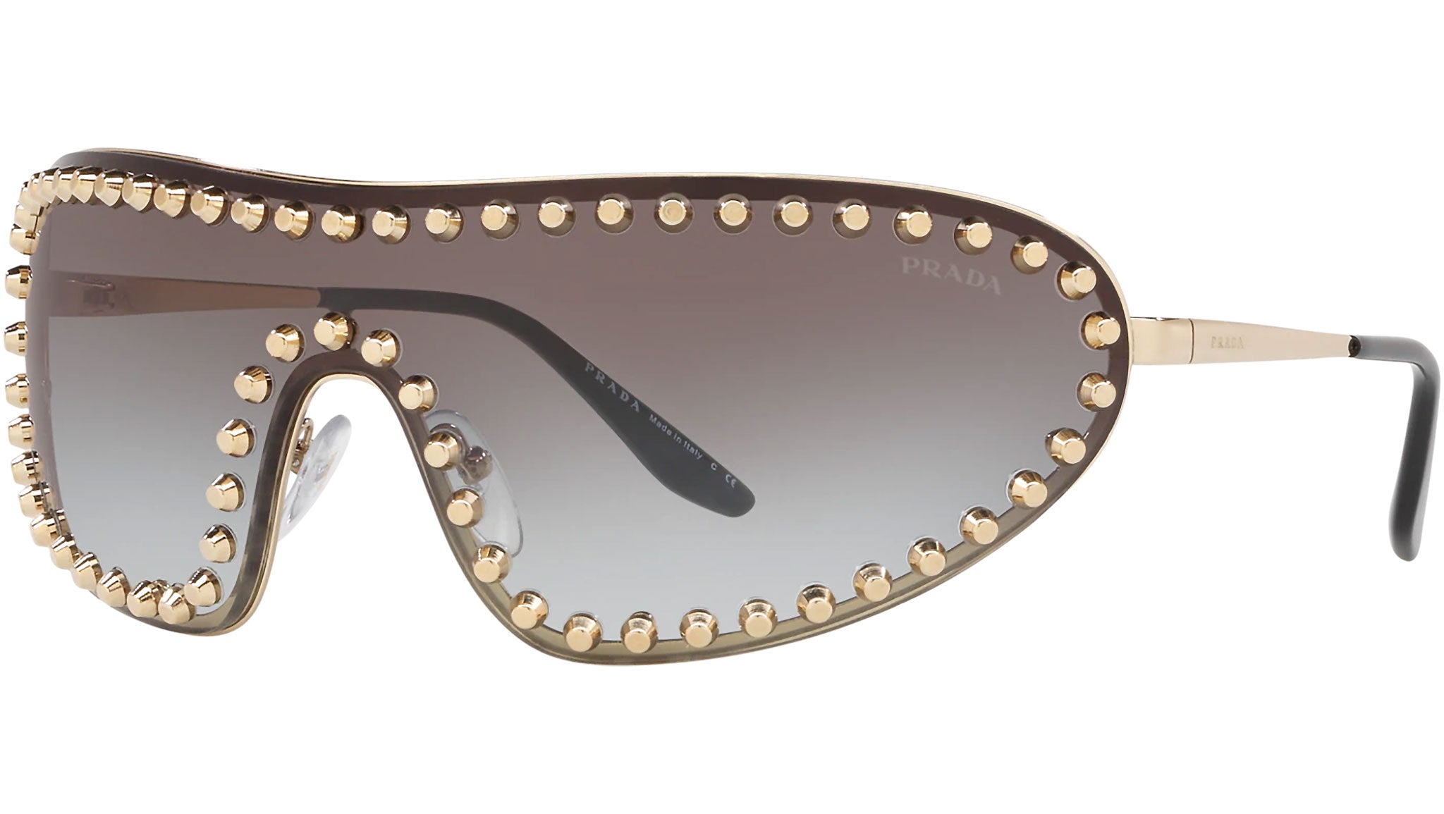 Prada sunglasses model PR 73VS, pale gold frame variant, color code 5080A7 with grey gradient lens. Prada represents the best of Italian culture and tradition. It is one of the most innovative, prestigious and widely recognized brands in the fashion and luxury goods industries, with a keen attention to details and new trends.