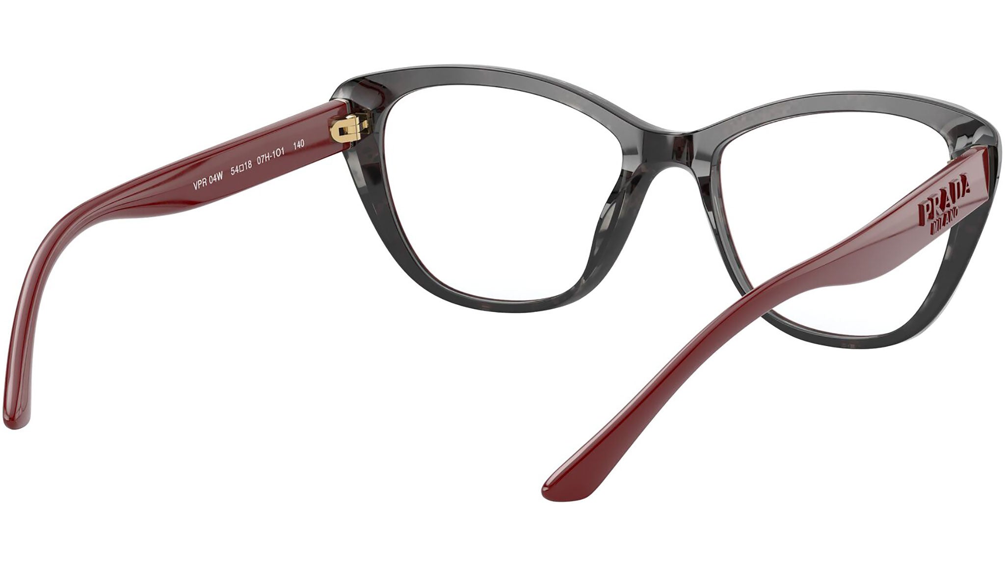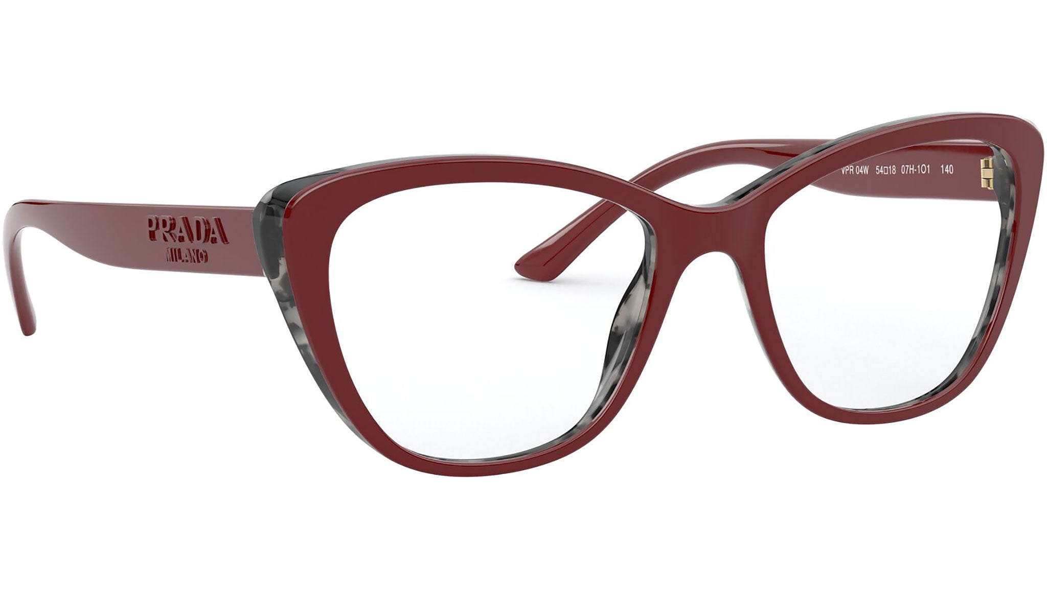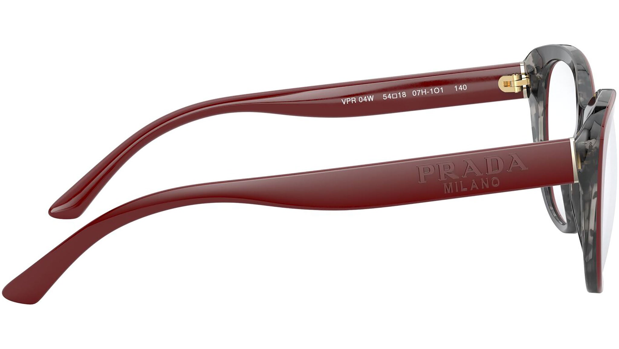 Occhiali da vista Prada modello PR04WV variante colore bordeaux e grigio avana, codice colore 07H1O1. Prada rappresenta il vertice della tradizione e della moda Italiana. È uno dei brand più innovativi, prestigiosi e più riconosciuti nel mondo del fashion e degli accessori di lusso, massima espressione della cura per i dettagli, emblema di stile, nella sua raffinata interpretazione dei nuovi trend della moda internazionale.