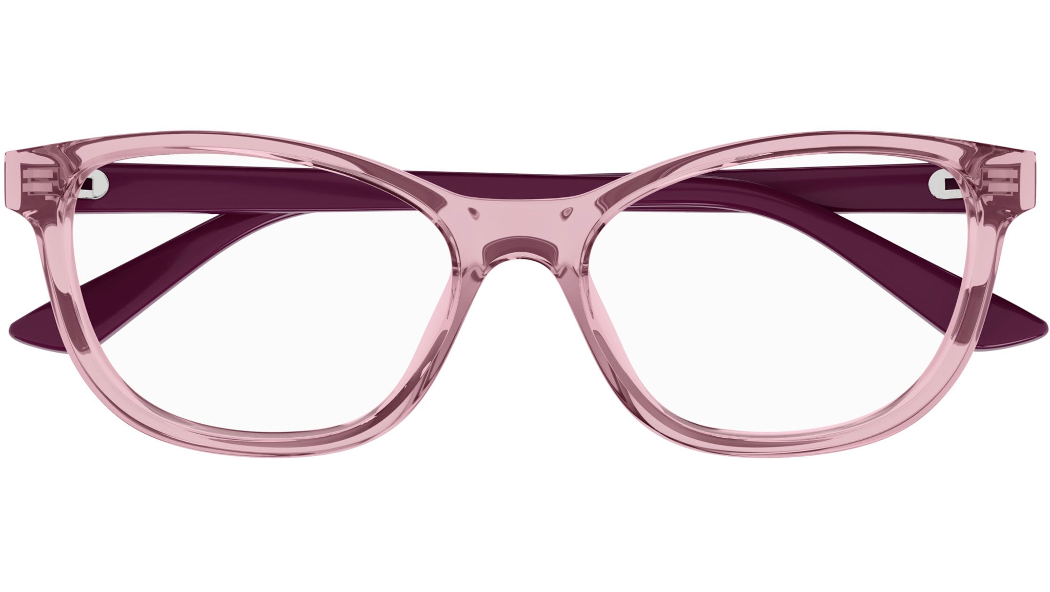 Occhiali da vista Puma Junior modello PJ0077O variante colore 004 rosa chiaro trasparente lucido con lenti demo. Rivenditore autorizzato Puma online. Gli occhiali vengono consegnati con custodia e accessori originali e sono coperti dalla garanzia ufficiale di 12 mesi del produttore.
