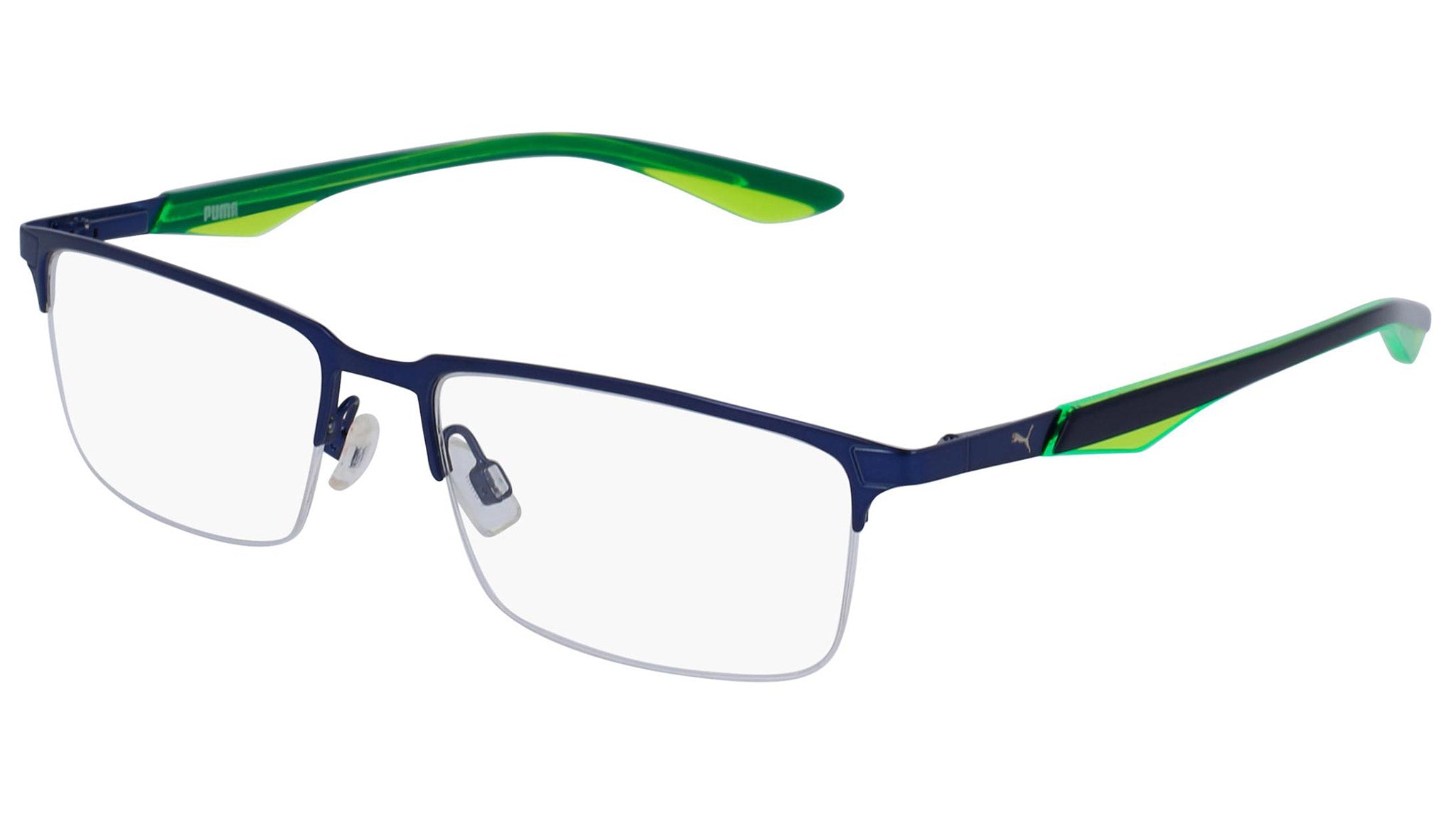 Puma Eyewear model PU0064O 001 semimatte blue optical frame. Designed to fit the movers and the shakers, who seek a dynamic lifestyle. Puma Eyewear is for the hustler, the bold and the Active, for those who see beyond trends and challenge the norm to move things forward.