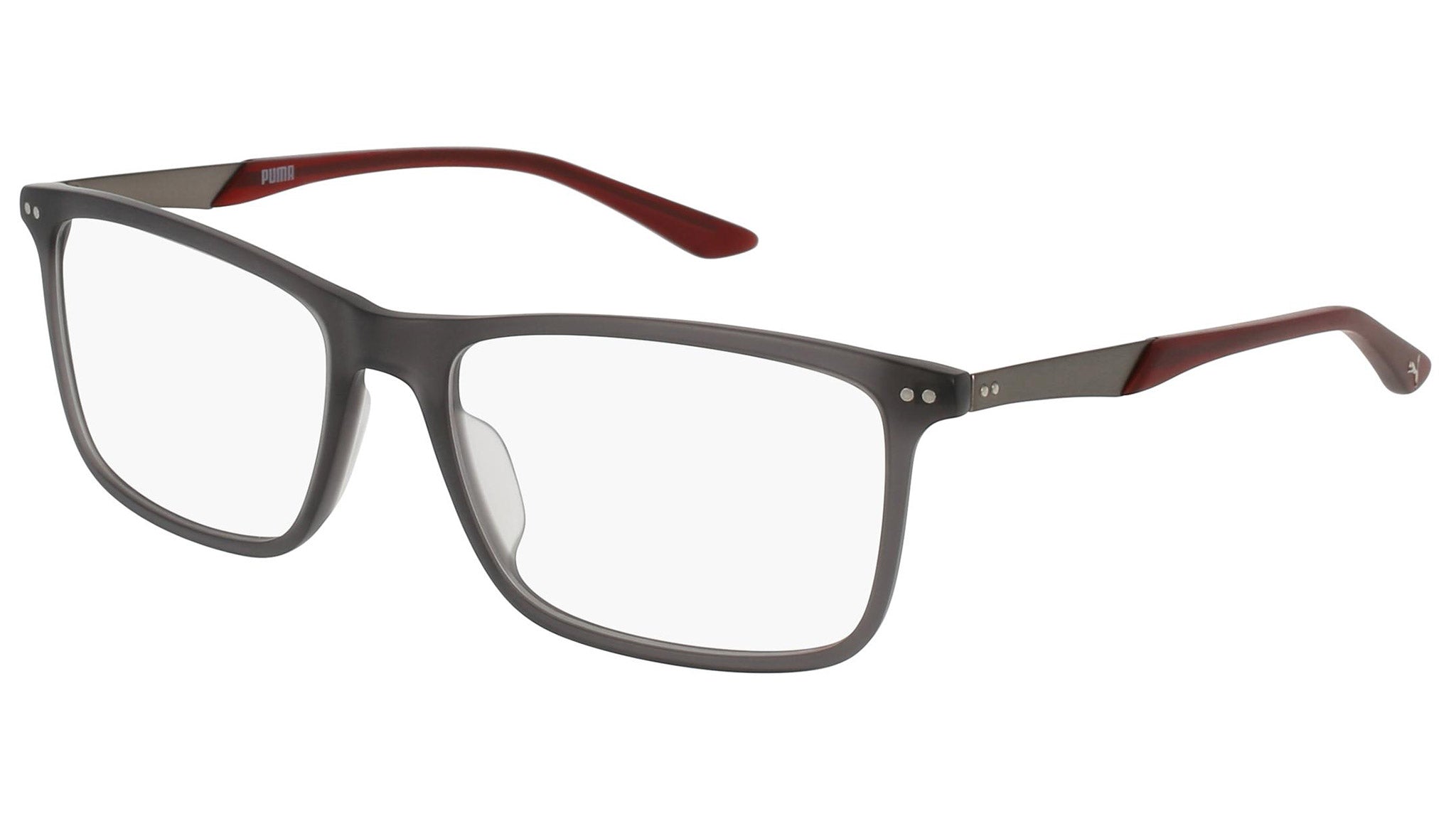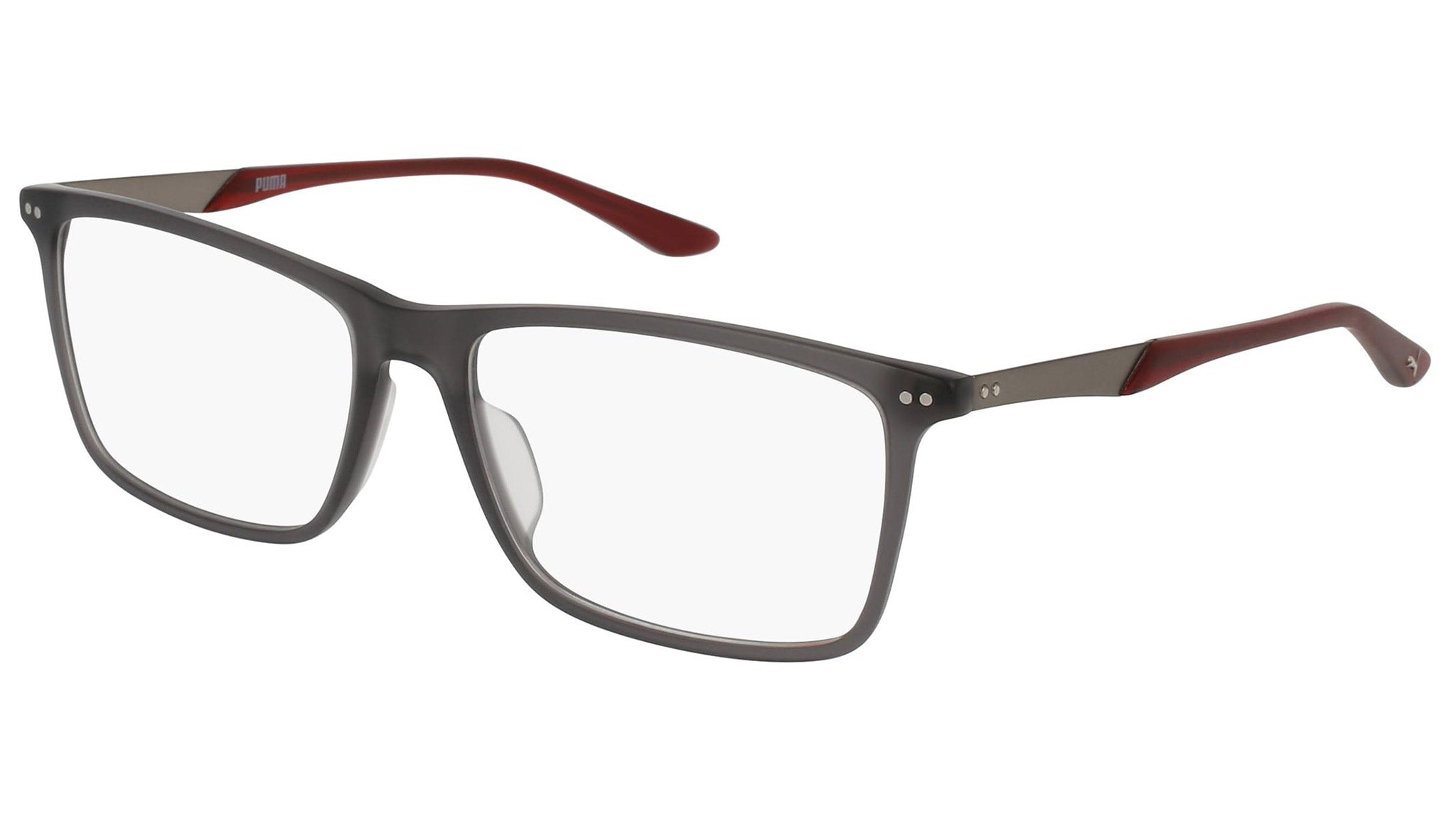 Puma Eyewear model PU0096O 003 matte transparent grey optical frame. Designed to fit the movers and the shakers, who seek a dynamic lifestyle. Puma Eyewear is for the hustler, the bold and the Active, for those who see beyond trends and challenge the norm to move things forward.