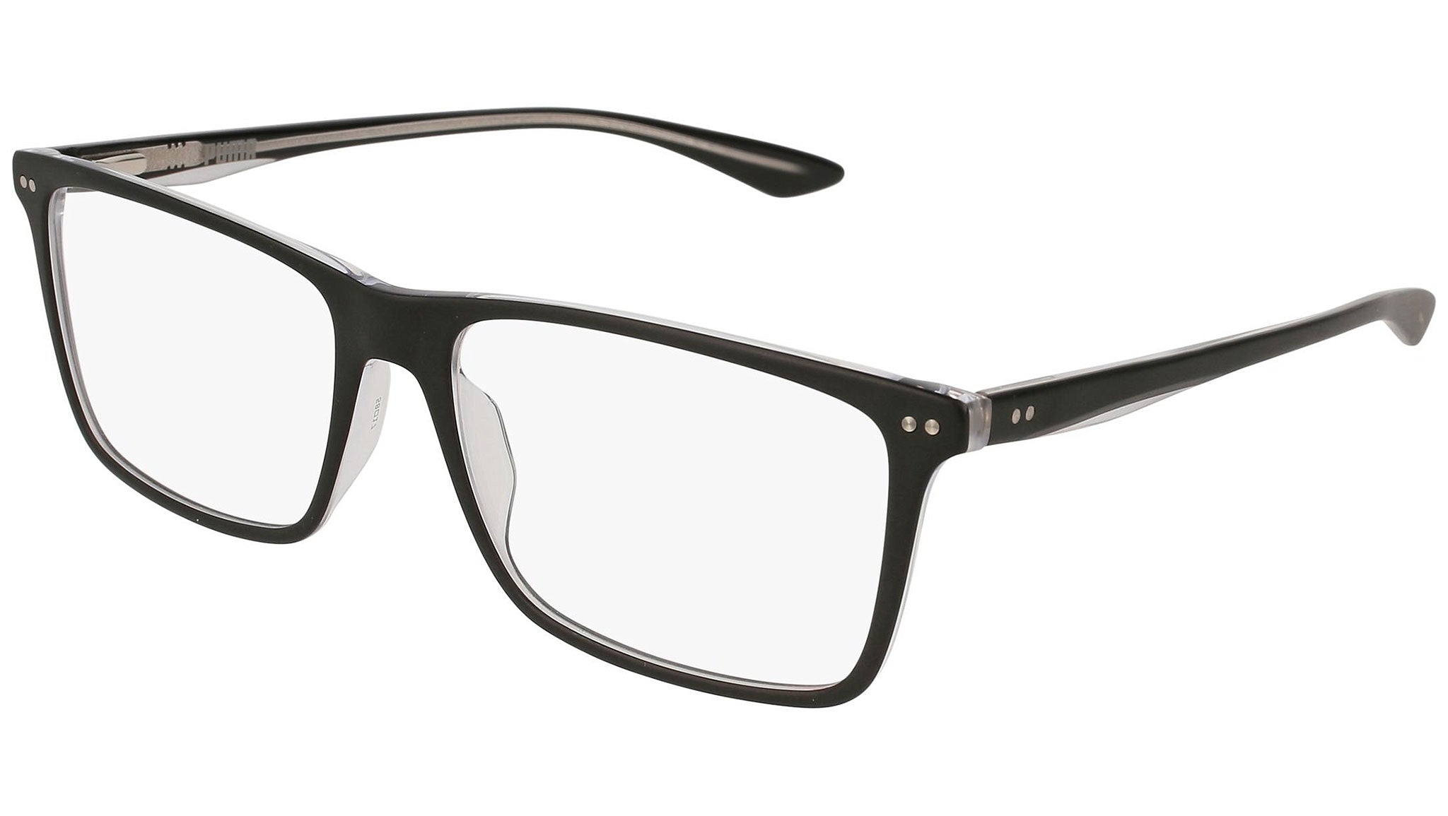 Puma Eyewear model PU0130O 007 optical frame bilayer matte black / shiny crystal frame and black temple. Designed to fit the movers and the shakers, who seek a dynamic lifestyle. Puma Eyewear is for the hustler, the bold and the Active, for those who see beyond trends and challenge the norm to move things forward.Buy your frames online and take them to your local optician to fit prescription lenses.
