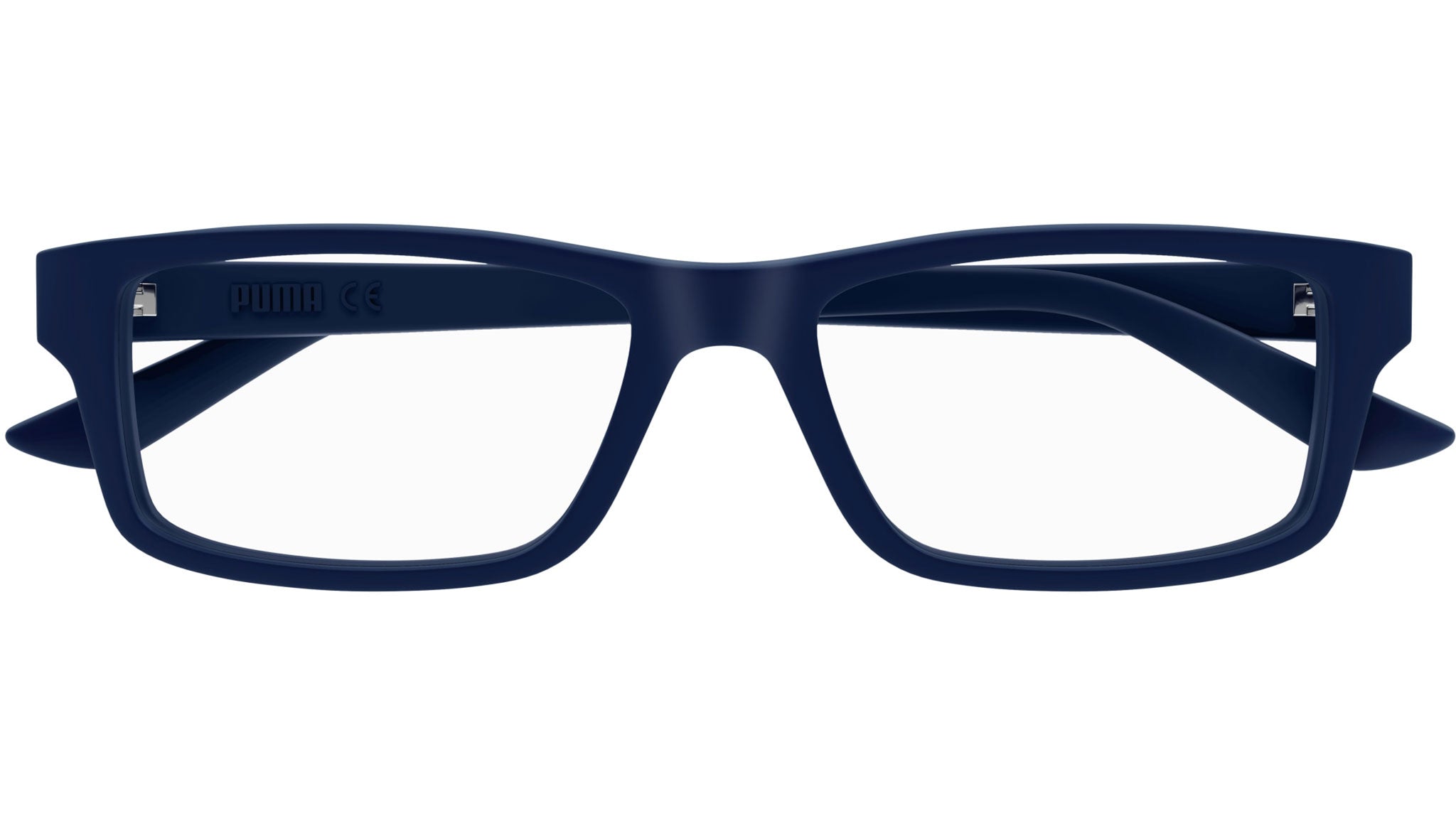 Occhiali da vista Puma Sportstyle modello PU0431O variante colore 003 blu scuro opaco tinta unita con astine color blu.