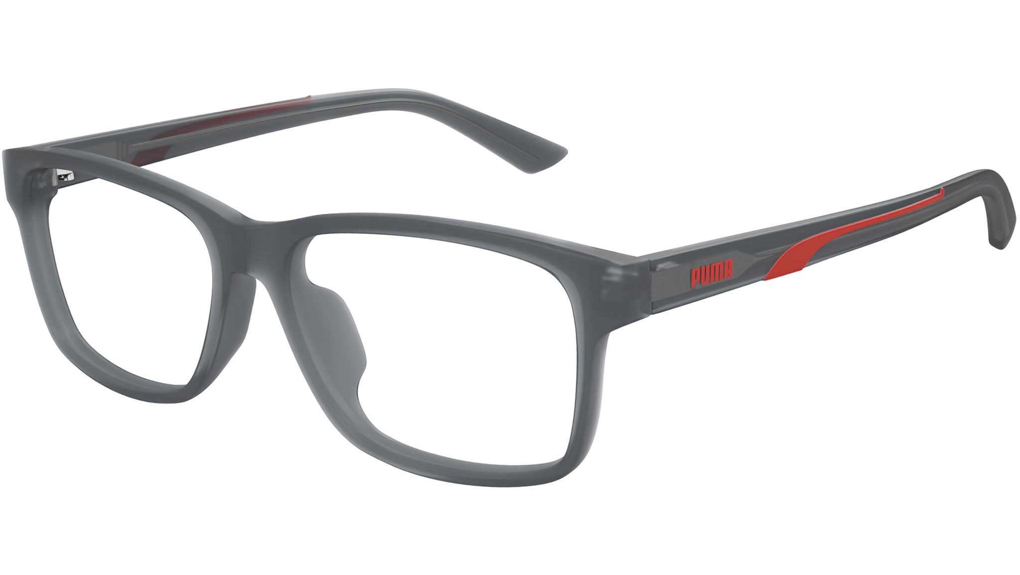 Occhiali da vista Puma Essential modello PU0475OA variante colore 003 grigio trasparente opaco con lenti demo. Rivenditore autorizzato Puma online. Gli occhiali vengono consegnati con custodia e accessori originali e sono coperti dalla garanzia ufficiale di 12 mesi del produttore.