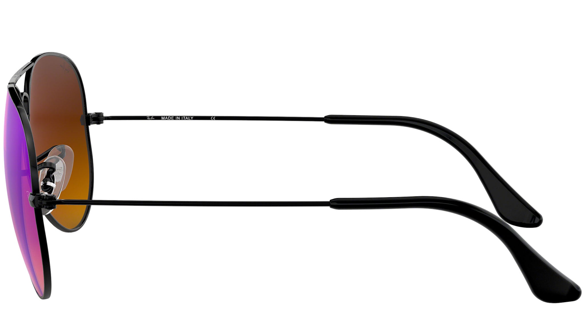 The Aviator may be one of the most iconic sunglasses styles of all time, but that doesn’t mean it can’t take us on a flight to the future. Introducing the Aviator Gradient Flash Lenses styles, a shimmering new design from Ray-Ban. With the classic Aviator profile combined with crystal mirror lenses, the Aviator Gradient Flash Lenses styles turn an iconic shape into a symbol of the new wave. The new gradient flash lenses provide superior sun protection and reflect confidence without showing off. Outlined by black rims that enhance the shine of these mirror shades and complete with a metal frame that is both lightweight and resilient, now you can go anywhere in iridescent style.
