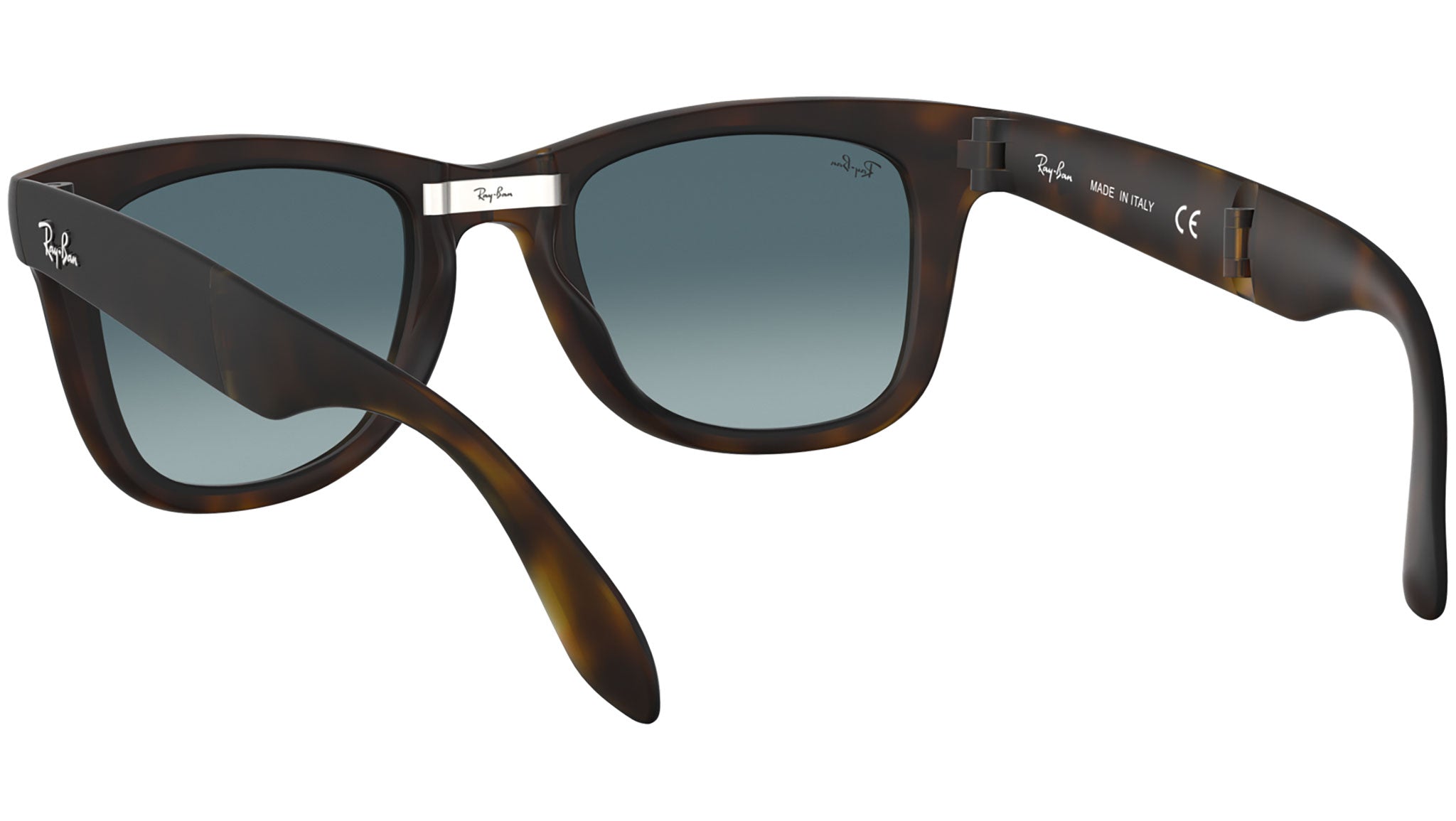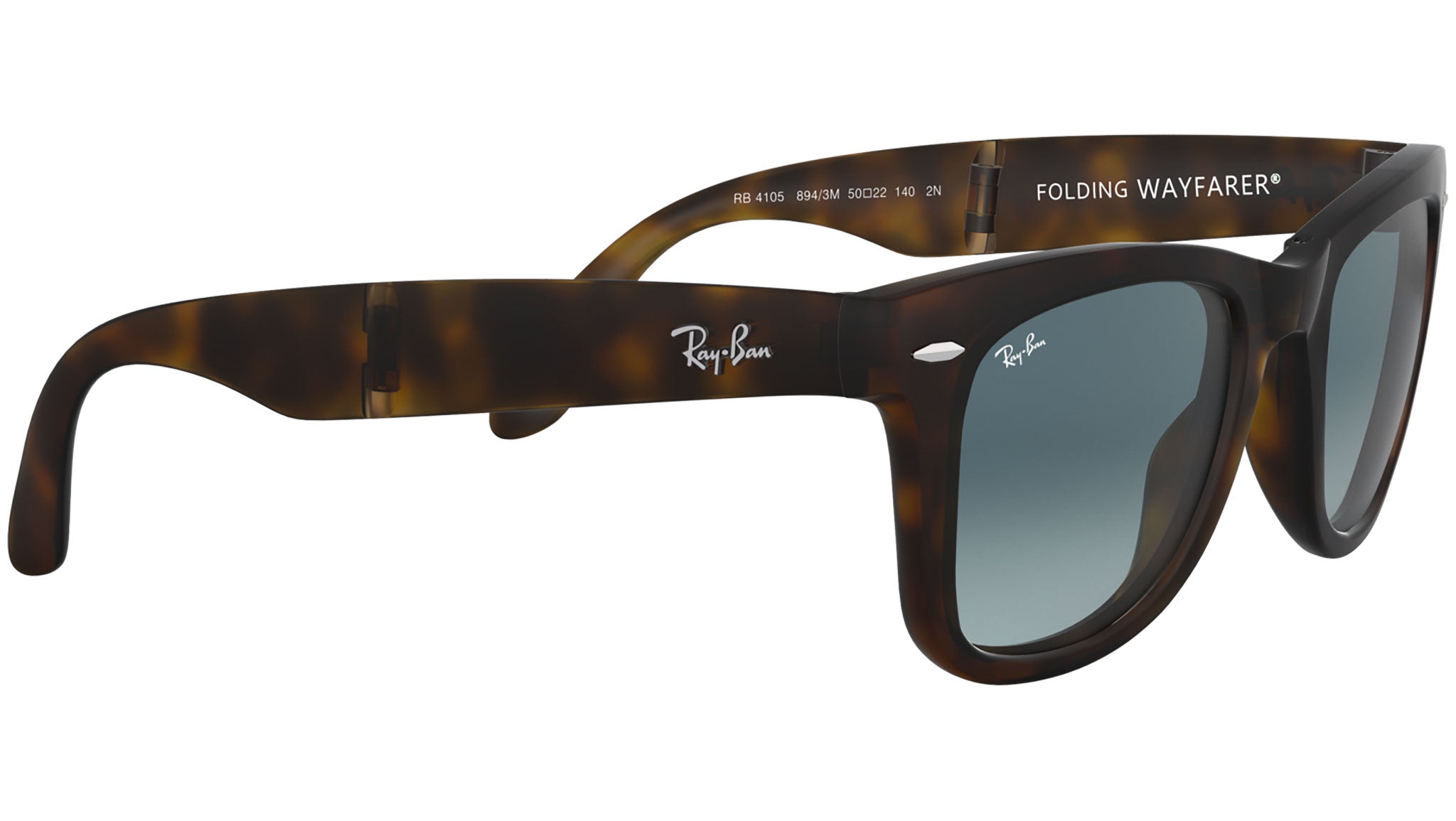 Occhiali da sole Ray-Ban Wayfarer Folding Gradient modello RB4105 codice colore 894/3M con montatura in acetato color opaco avana e lenti in cristallo color sfumato blu grigio. Ispirato al classico modello Wayfarer, l'iconico Wayfarer Folding si trasforma in una versione compatta e pieghevole, pratica e allo stesso tempo elegante. Il Wayfarer Folding Classic si piega facilmente, offrendo massima portabilità senza rinunciare alla robustezza della montatura. Indossalo, piegalo, riaprilo e indossalo di nuovo. Perfetto per chi cerca stile e comodità.