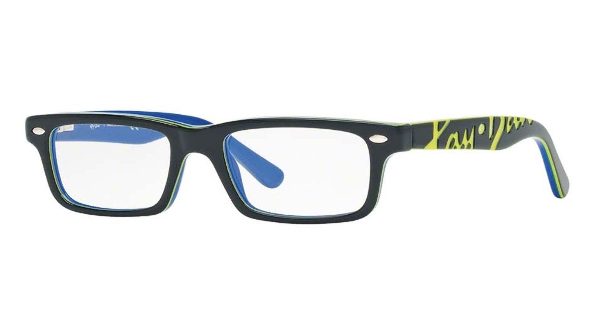 Occhiali da vista Ray-Ban Kids RY1535 color grigio scuro sul blu in acetato codice colore 3600. Forma unisex rettangolare full rim con lenti demo. Con custodia originale e garanzia. Rivenditore autorizzato Ray-Ban.
