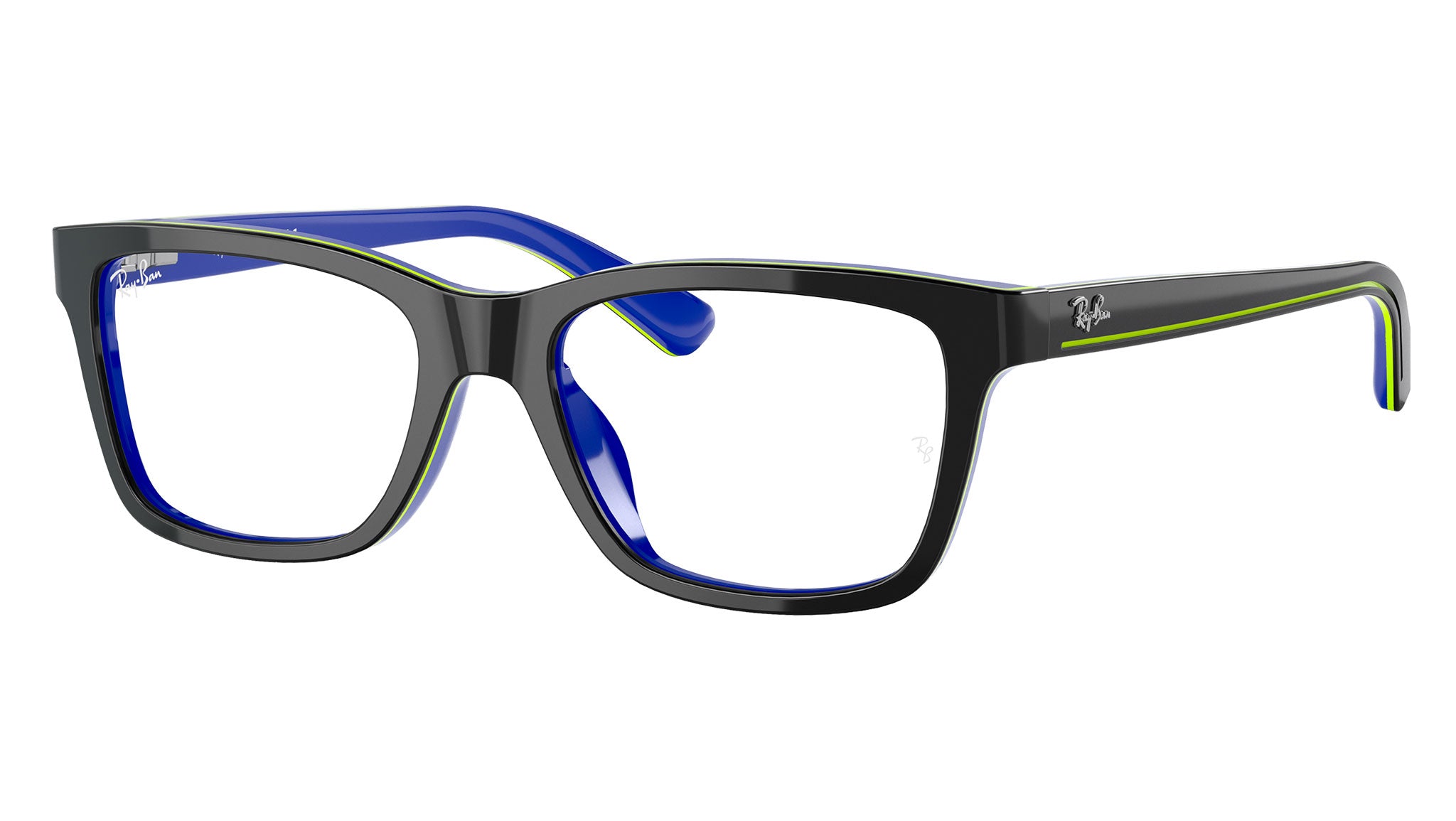 Occhiali da vista Ray-Ban Kids RY1536 color grigio scuro sul blu in acetato codice colore 3600. Forma unisex quadrata full rim con lenti demo. Con custodia originale e garanzia. Rivenditore autorizzato Ray-Ban.