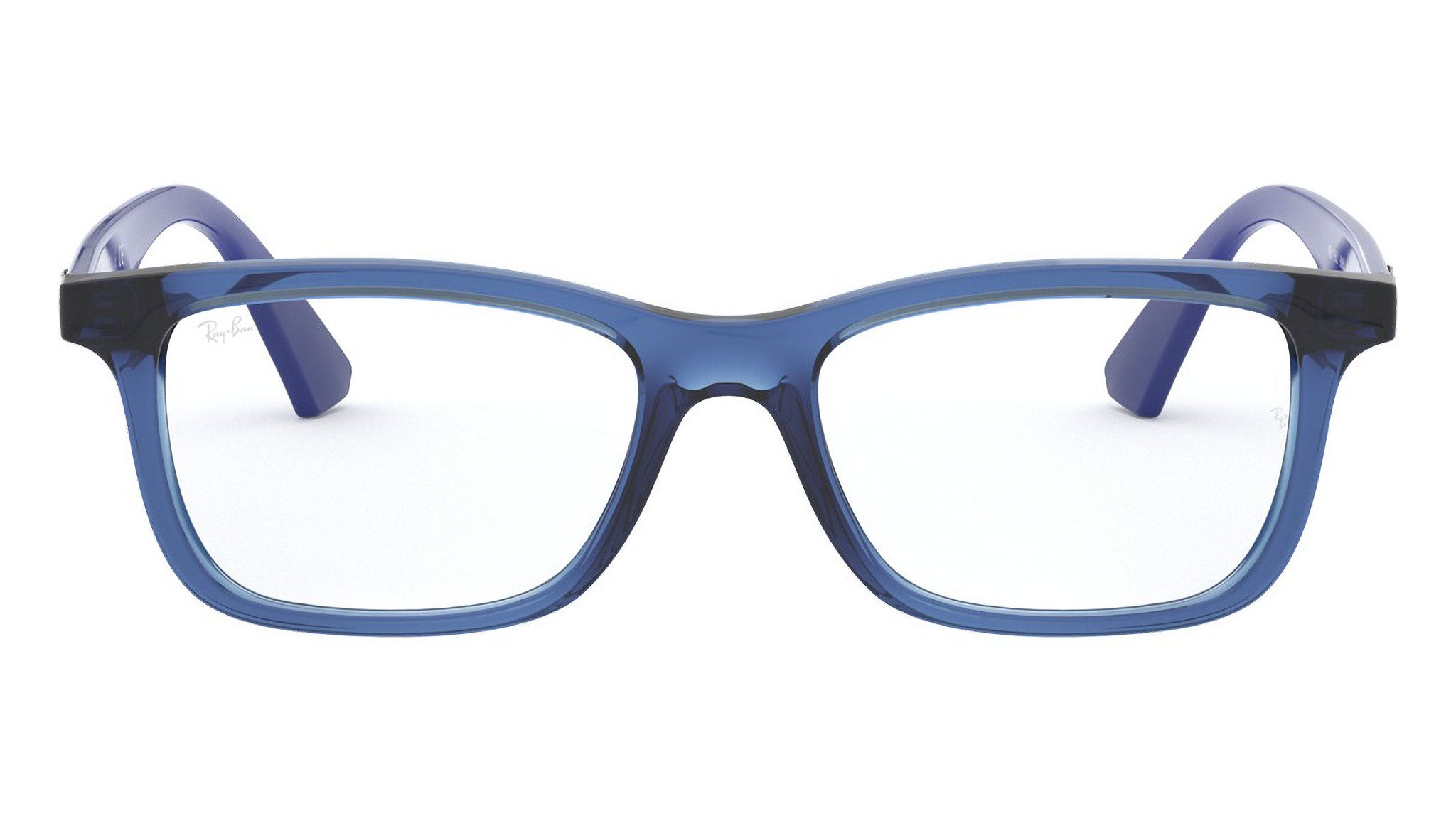 Occhiali da vista Ray-Ban Kids RY1562 color blu trasparente in acetato codice colore 3686. Forma quadrata full rim con lenti demo. Con custodia originale e garanzia. Rivenditore autorizzato Ray-Ban.