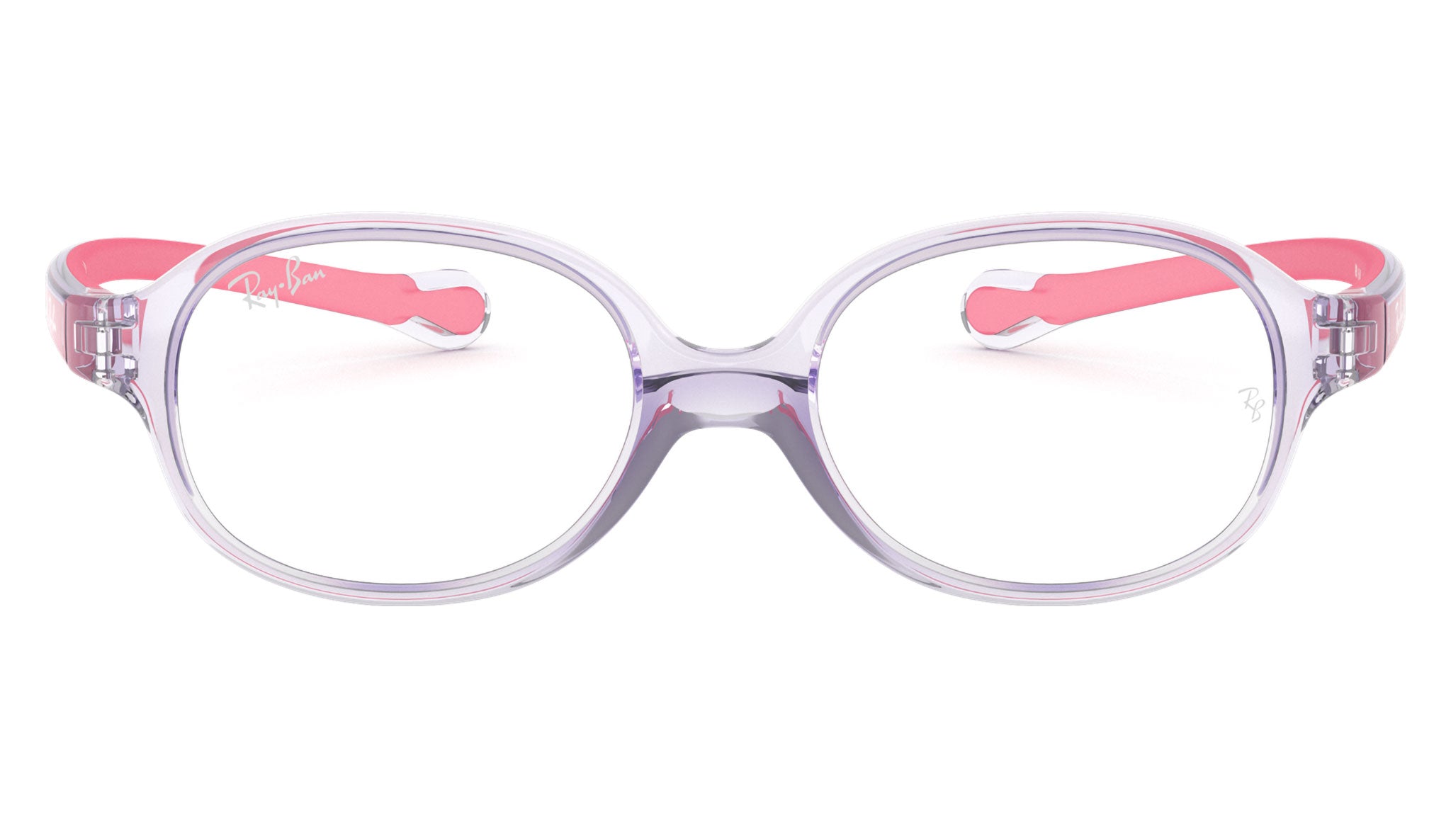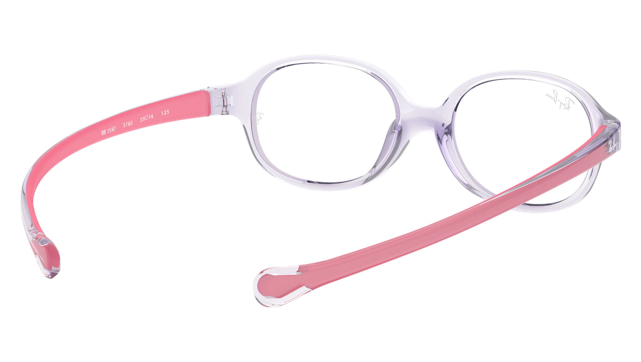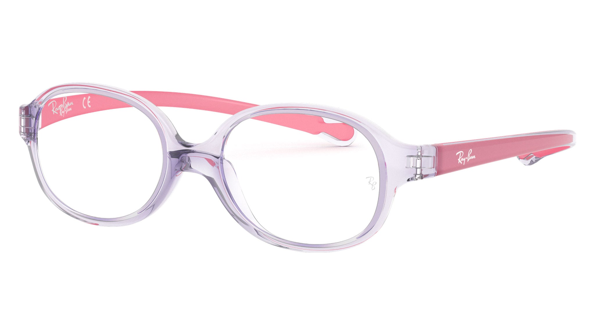 Occhiali da vista Ray-Ban Kids RY1587 color violet luminoso trasparente in acetato codice colore 3765. Forma ovale full rim con lenti demo. Con custodia originale e garanzia. Rivenditore autorizzato Ray-Ban.
