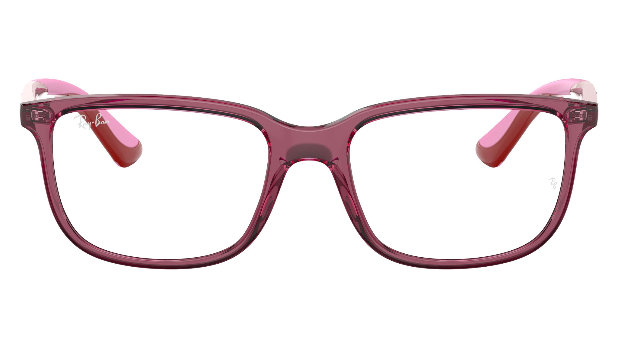 Occhiali da vista Ray-Ban Kids RY1605 color trasperento rosa in acetato codice colore 3777. Forma rettangolare full rim con lenti demo. Con custodia originale e garanzia. Rivenditore autorizzato Ray-Ban.