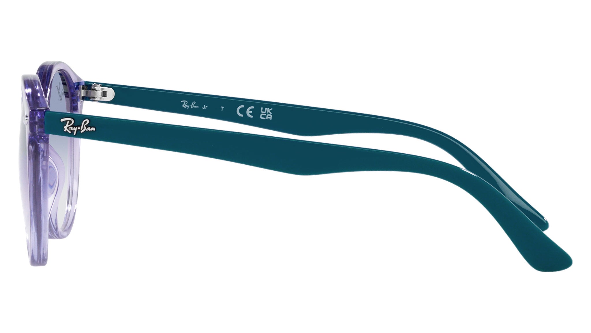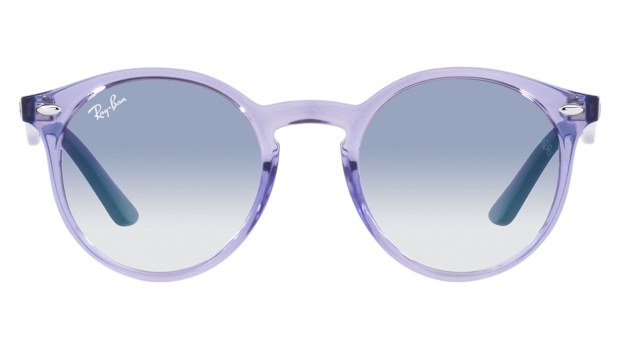 Occhiali da sole Ray-Ban Kids RJ9064S in iniettato codice colore 712619 violet trasparente. Forma panto unisex full rim con lenti blu. Con custodia originale e garanzia. Rivenditore autorizzato Ray-Ban.