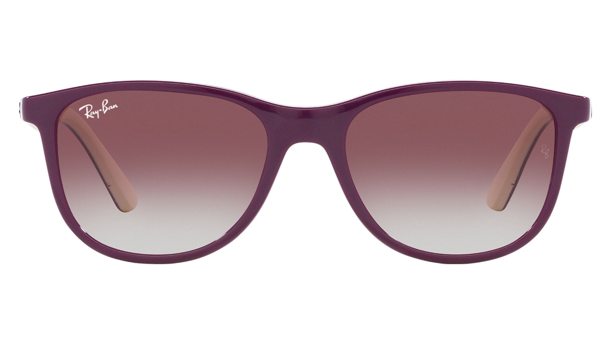 Occhiali da sole Ray-Ban Kids RJ9077S in iniettato codice colore 71348G viola su beige. Forma quadrata unisex full rim con lenti viola / grigio. Con custodia originale e garanzia. Rivenditore autorizzato Ray-Ban.