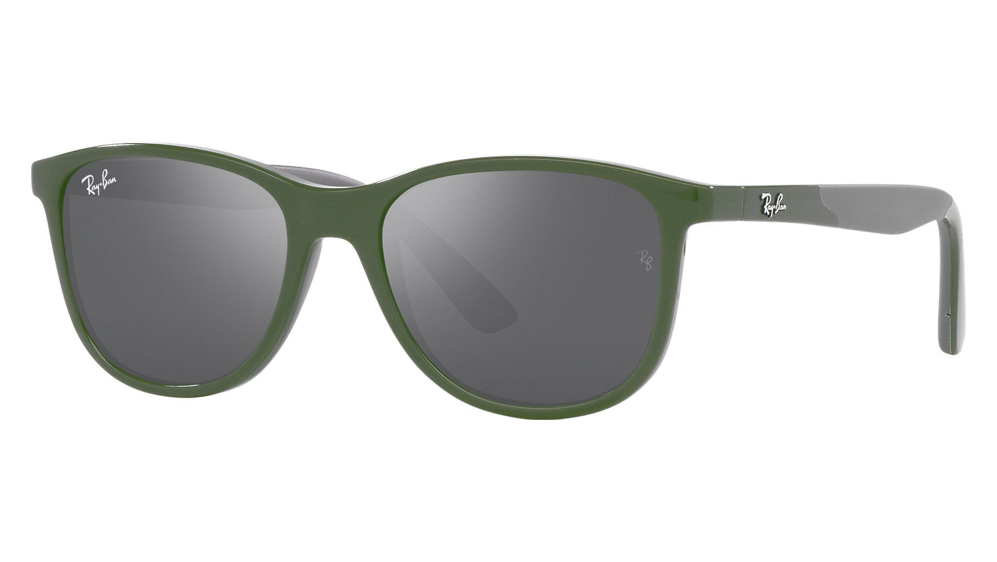 Occhiali da sole Ray-Ban Kids RJ9077S in iniettato codice colore 71356G verde su grigio. Forma quadrata unisex full rim con lenti argento / grigio. Con custodia originale e garanzia. Rivenditore autorizzato Ray-Ban.