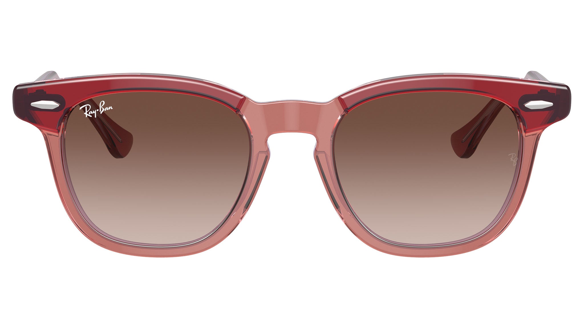 Occhiali da sole Ray-Ban Kids RJ9098S in acetato codice colore 715413 top rosso / arancione / viola chiaro. Forma quadrata unisex full rim con lenti marrone. Con custodia originale e garanzia. Rivenditore autorizzato Ray-Ban.