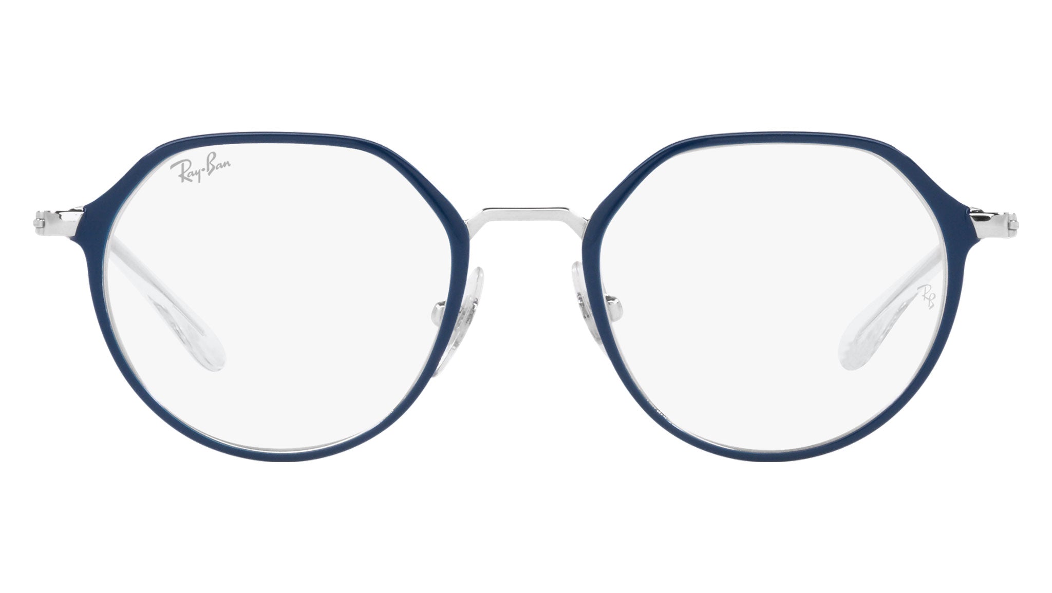 Occhiali da vista Ray-Ban Kids RY1058 color blu su argento in metallo codice colore 4085. Forma unisex geometrica full rim con lenti demo. Con custodia originale e garanzia. Rivenditore autorizzato Ray-Ban.