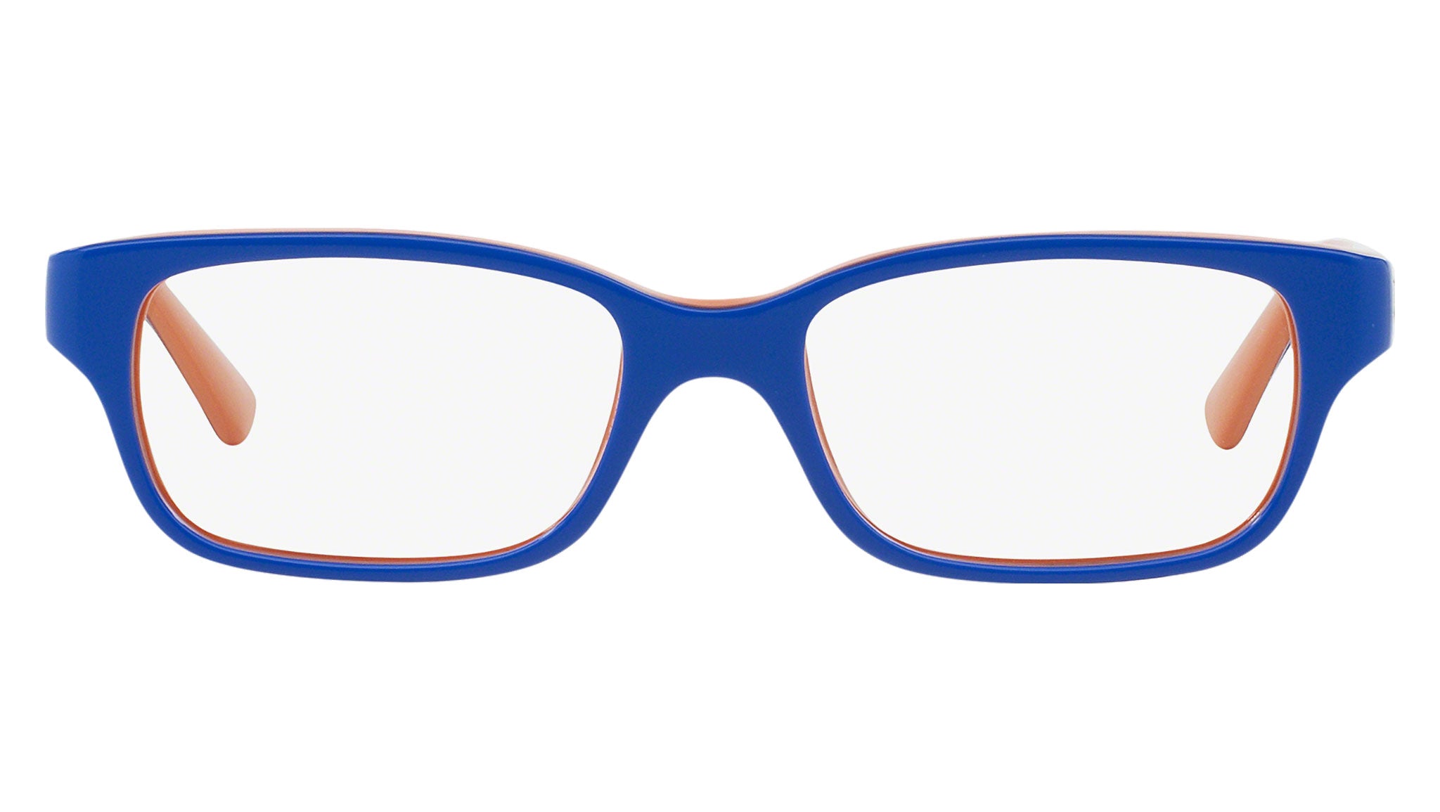 Occhiali da vista Ray-Ban Kids RY1527 color top blu su arancione in acetato codice colore 3578. Forma rettangolare full rim con lenti demo. Con custodia originale e garanzia. Rivenditore autorizzato Ray-Ban.