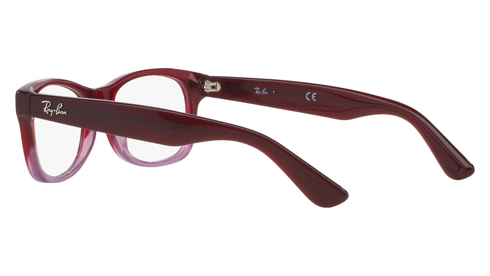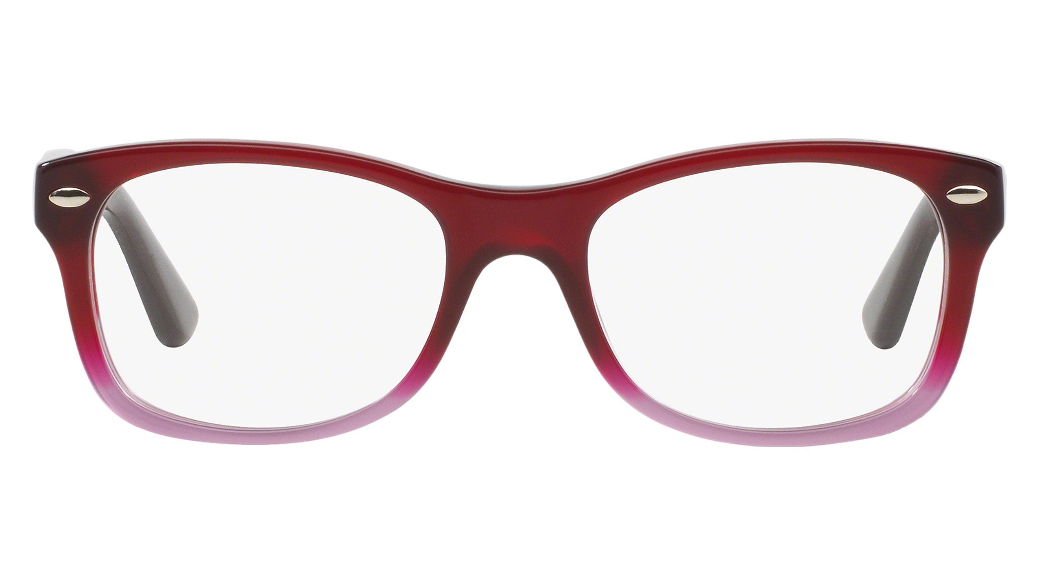 Occhiali da vista Ray-Ban Kids RY1528 color rosso opale sfumato in viola opale in acetato codice colore 3583. Forma quadrata full rim con lenti demo. Con custodia originale e garanzia. Rivenditore autorizzato Ray-Ban.
