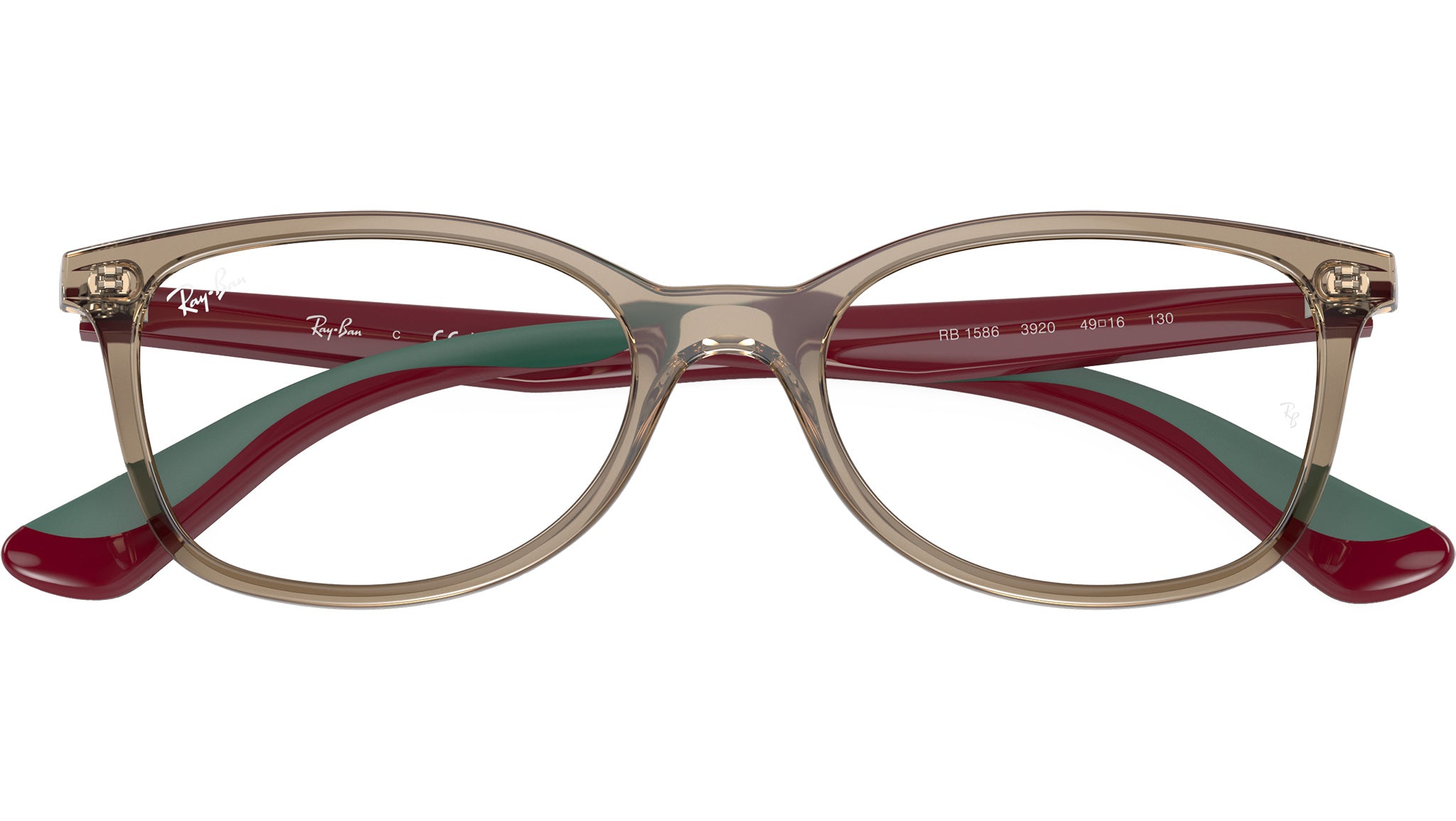 Occhiali da vista Ray-Ban Kids RY1586 color marrone trasparente in iniettato codice colore 3920. Forma unisex quadrata full rim con lenti demo. Con custodia originale e garanzia. Rivenditore autorizzato Ray-Ban.