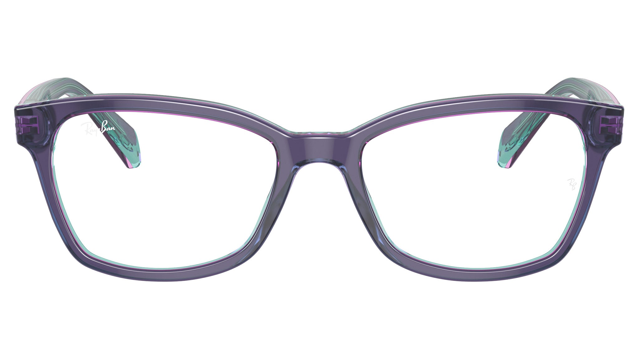 Occhiali da vista Ray-Ban Kids RY1591 color top blu / viola / azzurro chiaro in acetato codice colore 3945. Forma femminile quadrata full rim con lenti demo. Con custodia originale e garanzia. Rivenditore autorizzato Ray-Ban.