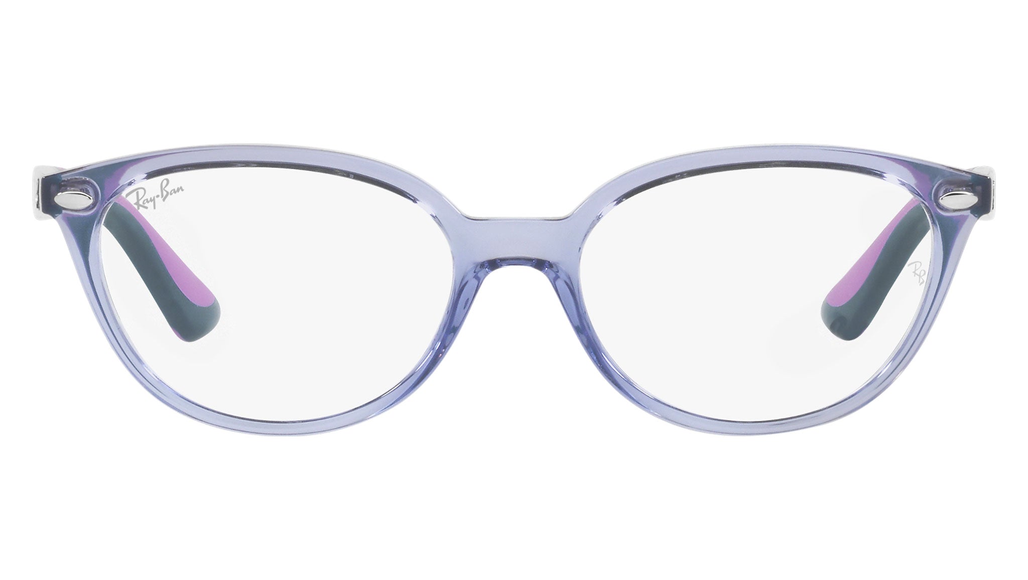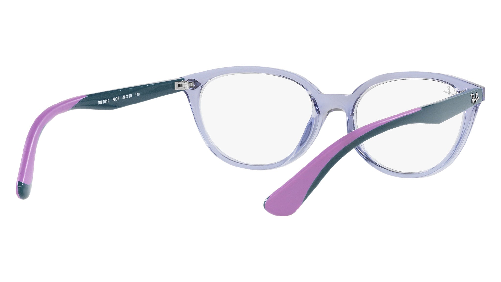 Occhiali da vista Ray-Ban Kids RY1612 color violet trasparente in iniettato codice colore 3906. Forma femminile cat eye full rim con lenti demo. Con custodia originale e garanzia. Rivenditore autorizzato Ray-Ban.
