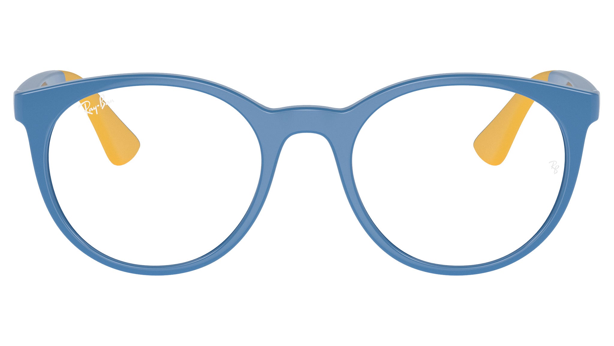 Occhiali da vista Ray-Ban Kids RY1628 color azzurro su giallo in iniettato codice colore 3951. Forma unisex panto full rim con lenti demo. Con custodia originale e garanzia. Rivenditore autorizzato Ray-Ban.