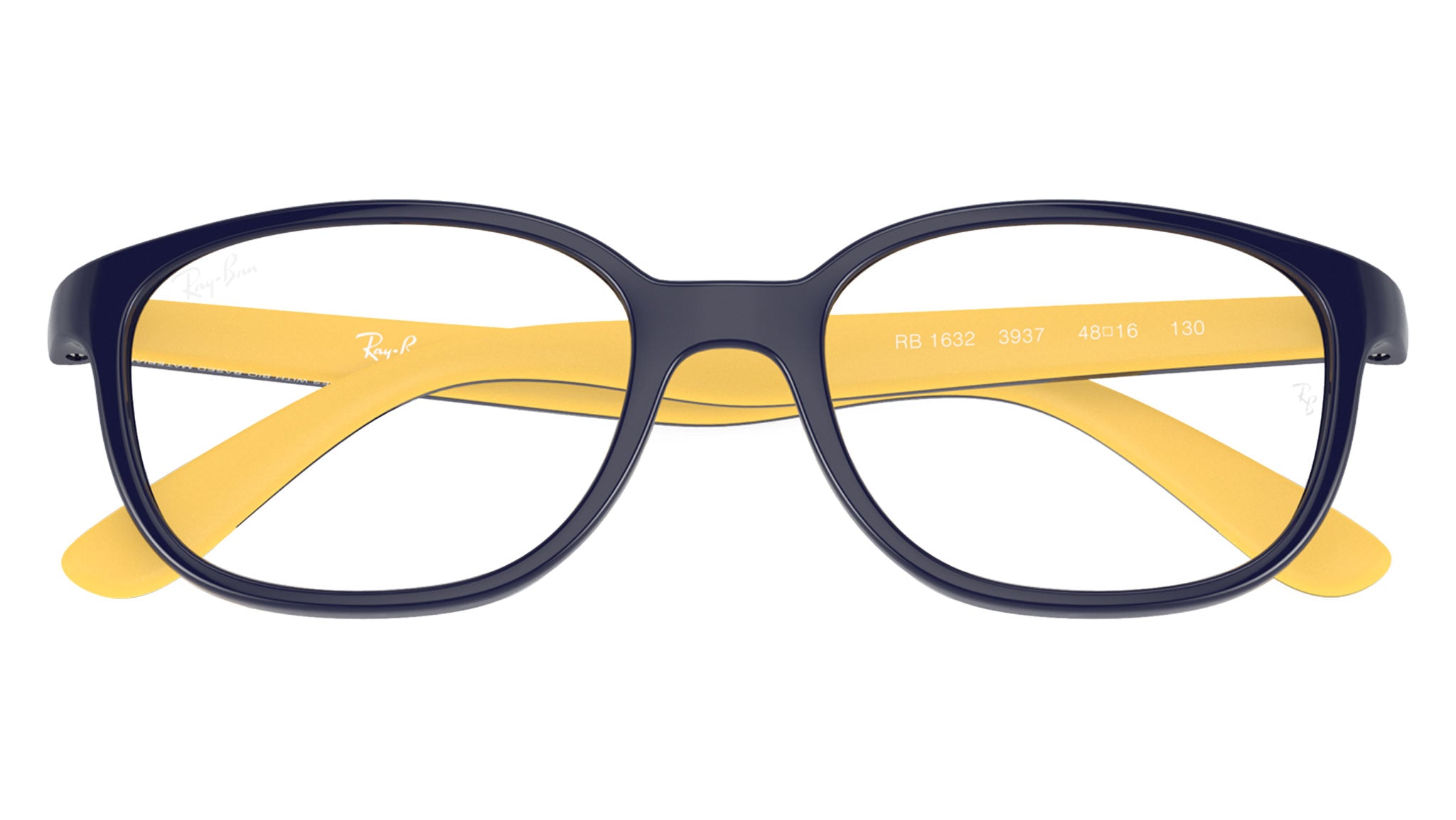 Occhiali da vista Ray-Ban Kids RY1632 color blu scuro su giallo in iniettato codice colore 3937. Forma unisex panto full rim con lenti demo. Con custodia originale e garanzia. Rivenditore autorizzato Ray-Ban.