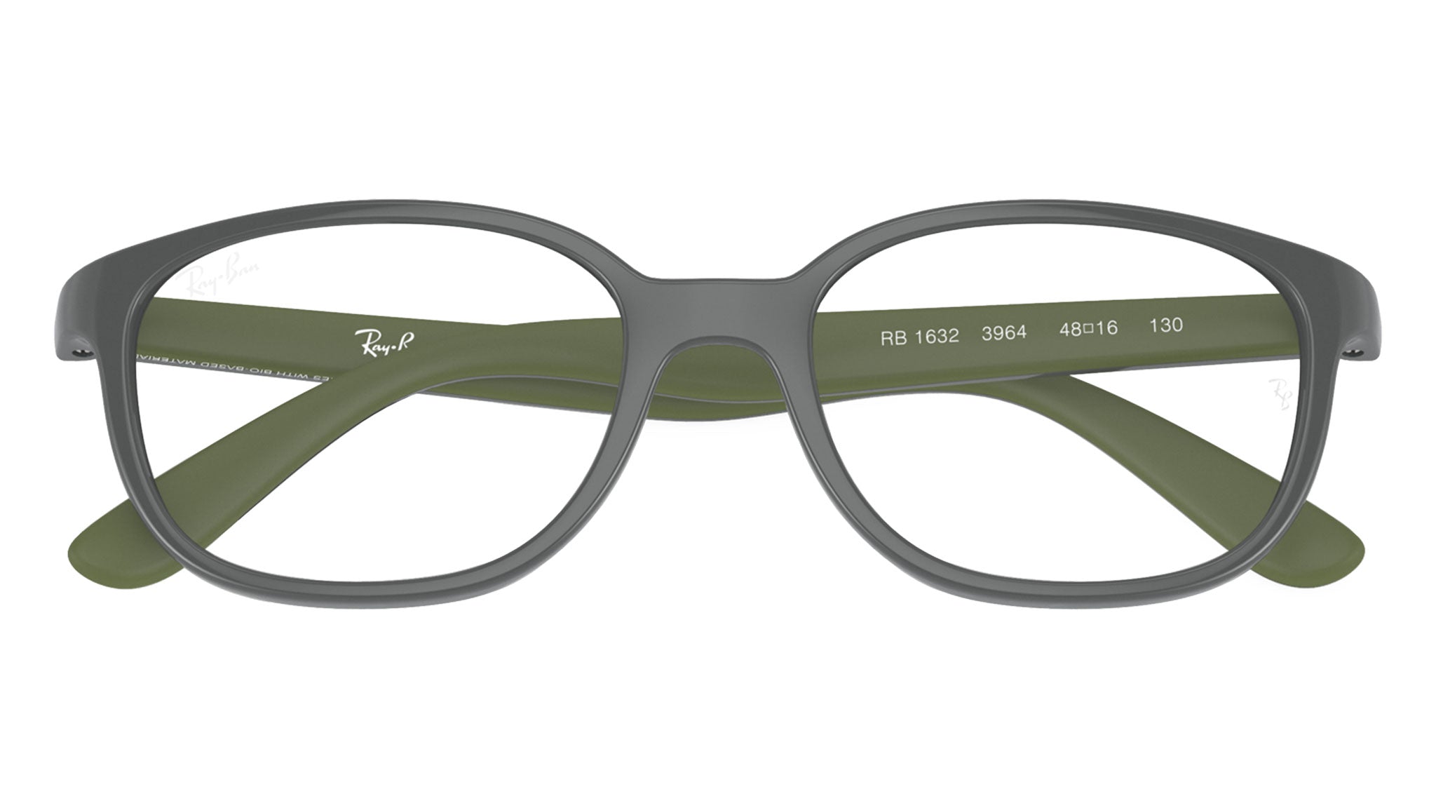 Occhiali da vista Ray-Ban Kids RY1632 color grigio scuro su verde in iniettato codice colore 3964. Forma unisex panto full rim con lenti demo. Con custodia originale e garanzia. Rivenditore autorizzato Ray-Ban.