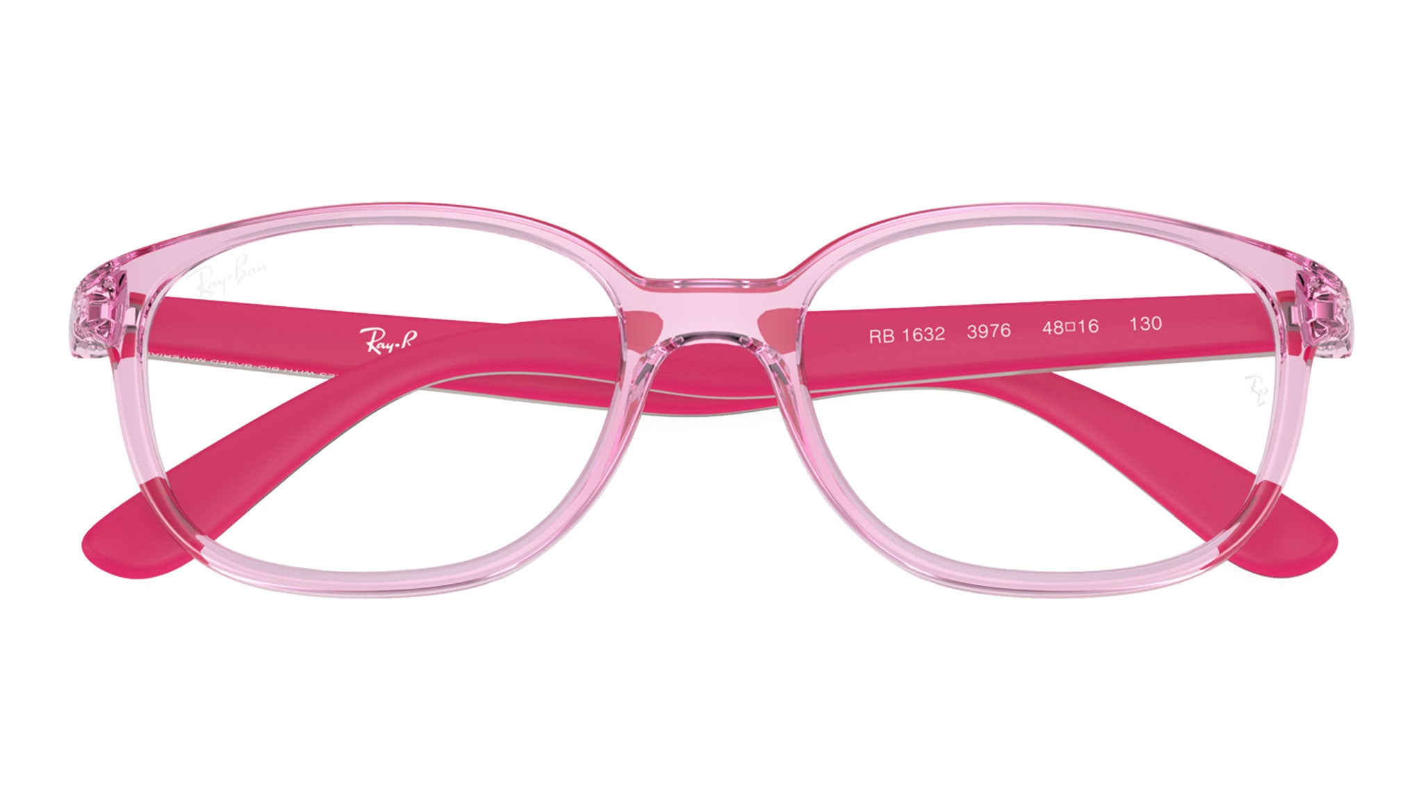 Occhiali da vista Ray-Ban Kids RY1632 color pink trasparente in iniettato codice colore 3976. Forma unisex panto full rim con lenti demo. Con custodia originale e garanzia. Rivenditore autorizzato Ray-Ban.