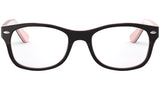 The same shape of the New Wayfarer you love in a smaller size perfect for kids. Ray-Ban New Wayfarer Junior eyeglasses are an addition to the Junior Collection, designed specifically with junior rockstars in mind. This child-size version of one of the most popular eyeglass models offers the same iconic square lenses and comfortable fit as the adult version. With all the fun and bright colors available, you may just never get your kids to take them off!
