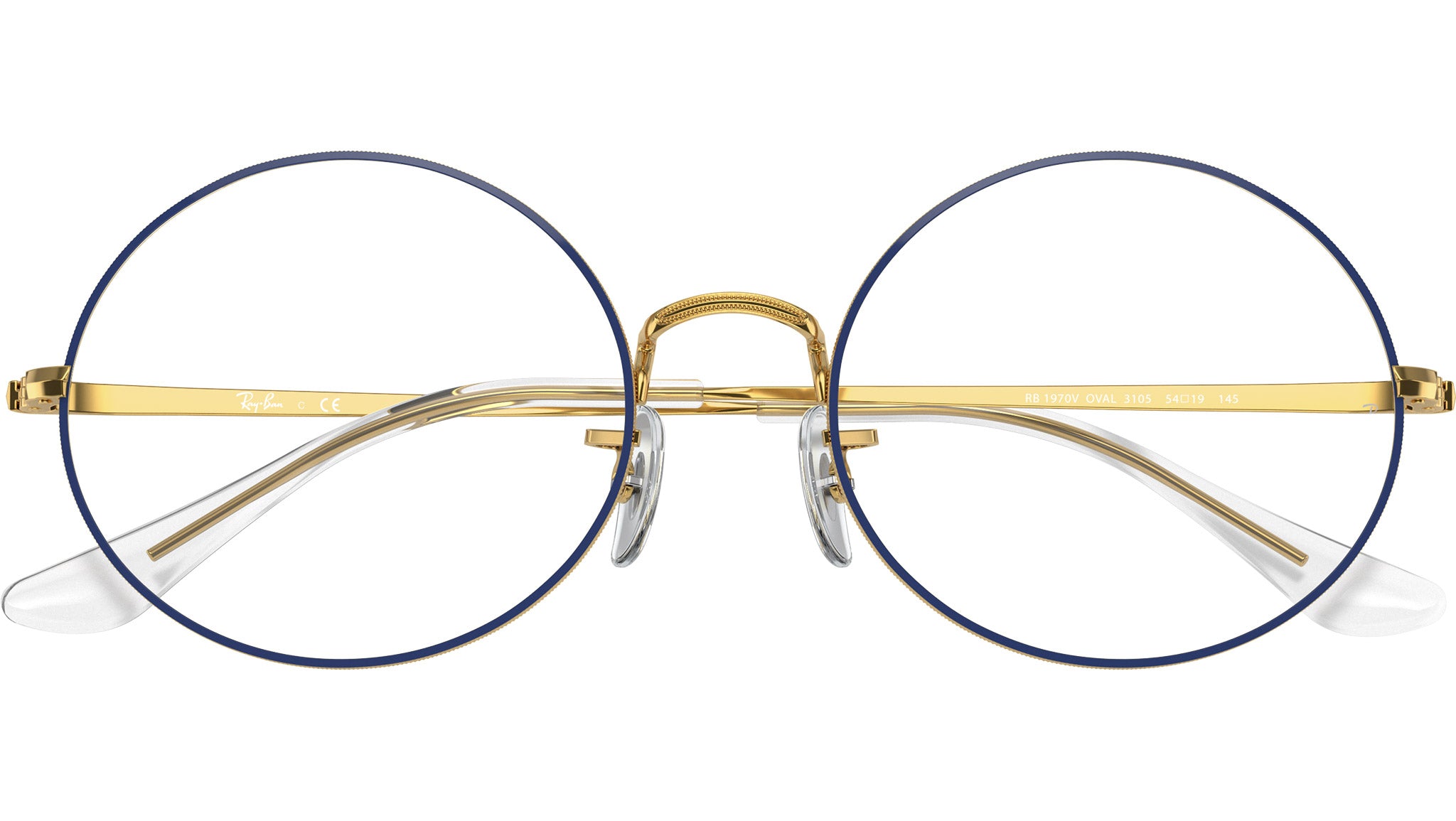 Occhiali da vista Ray-Ban Oval RB1970V 3105 unisex con montatura rettangolare in metallo blu sulla leggenda gold e lenti demo. Linea: Optics. Codice modello: 0RX1970V. Codice colore: 3105. Rivenditore autorizzato Ray-Ban online. Gli occhiali vengono consegnati con custodia e accessori originali e sono coperti dalla garanzia ufficiale di 12 mesi del produttore.