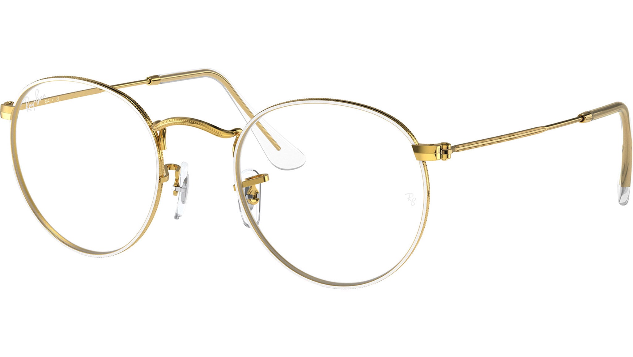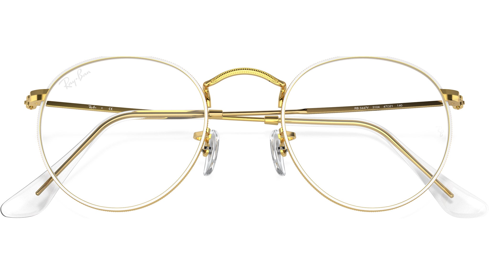 Occhiali da vista Ray-Ban Round Metal RB3447V 3104 unisex con montatura rotonda in metallo bianco su oro legend e lenti demo. Linea: Icons. Codice modello: 0RX3447V. Codice colore: 3104. Rivenditore autorizzato Ray-Ban online. Gli occhiali vengono consegnati con custodia e accessori originali e sono coperti dalla garanzia ufficiale di 12 mesi del produttore.