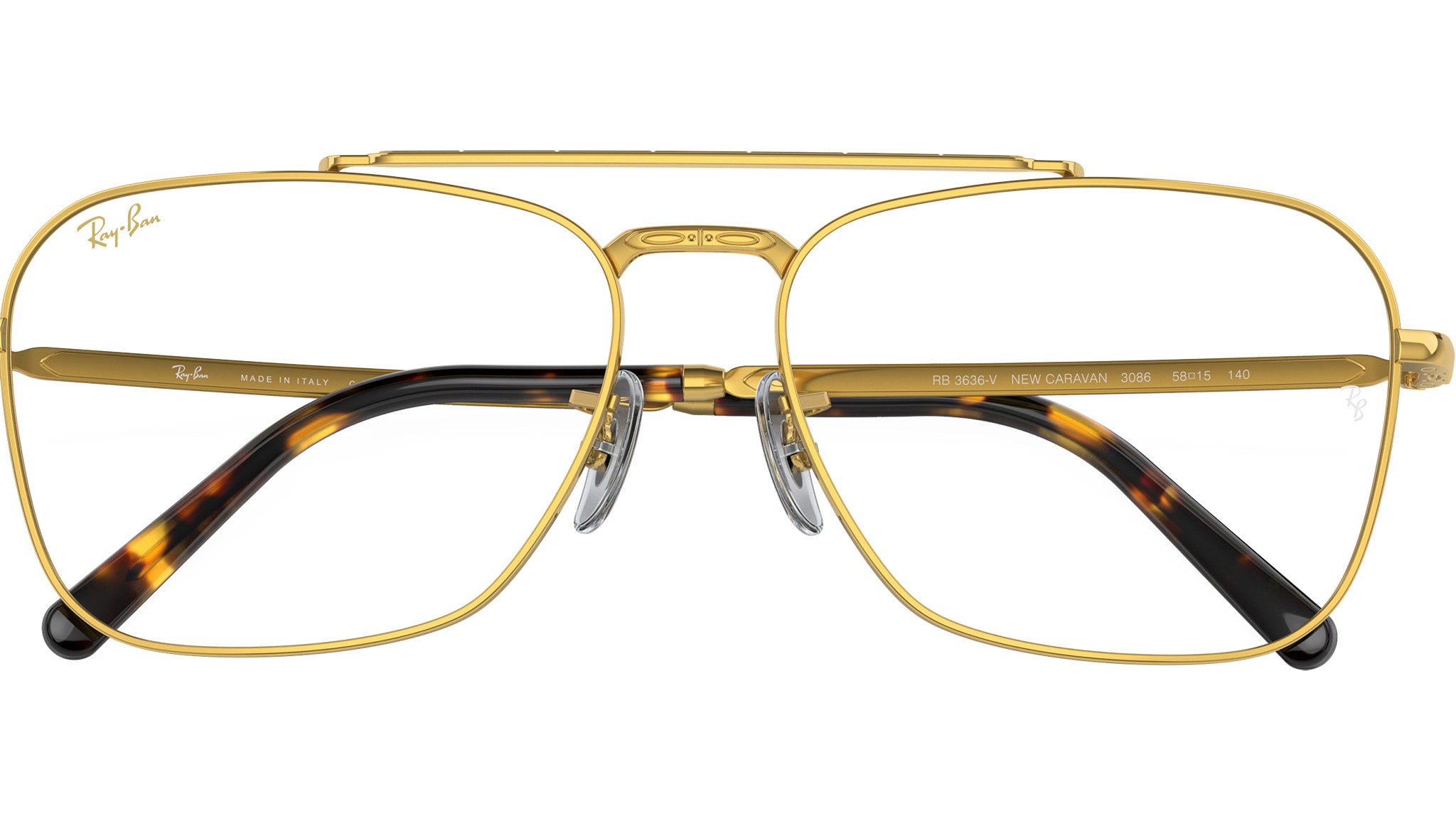 Occhiali da vista Ray-Ban New Caravan RB3636V 3086 unisex con montatura squadrata in metallo oro legend e lenti demo. Naselli regolabili. Linea: Evolution. Codice modello: 0RX3636V. Codice colore: 3086. Rivenditore autorizzato Ray-Ban online. Gli occhiali vengono consegnati con custodia e accessori originali e sono coperti dalla garanzia ufficiale di 12 mesi del produttore.