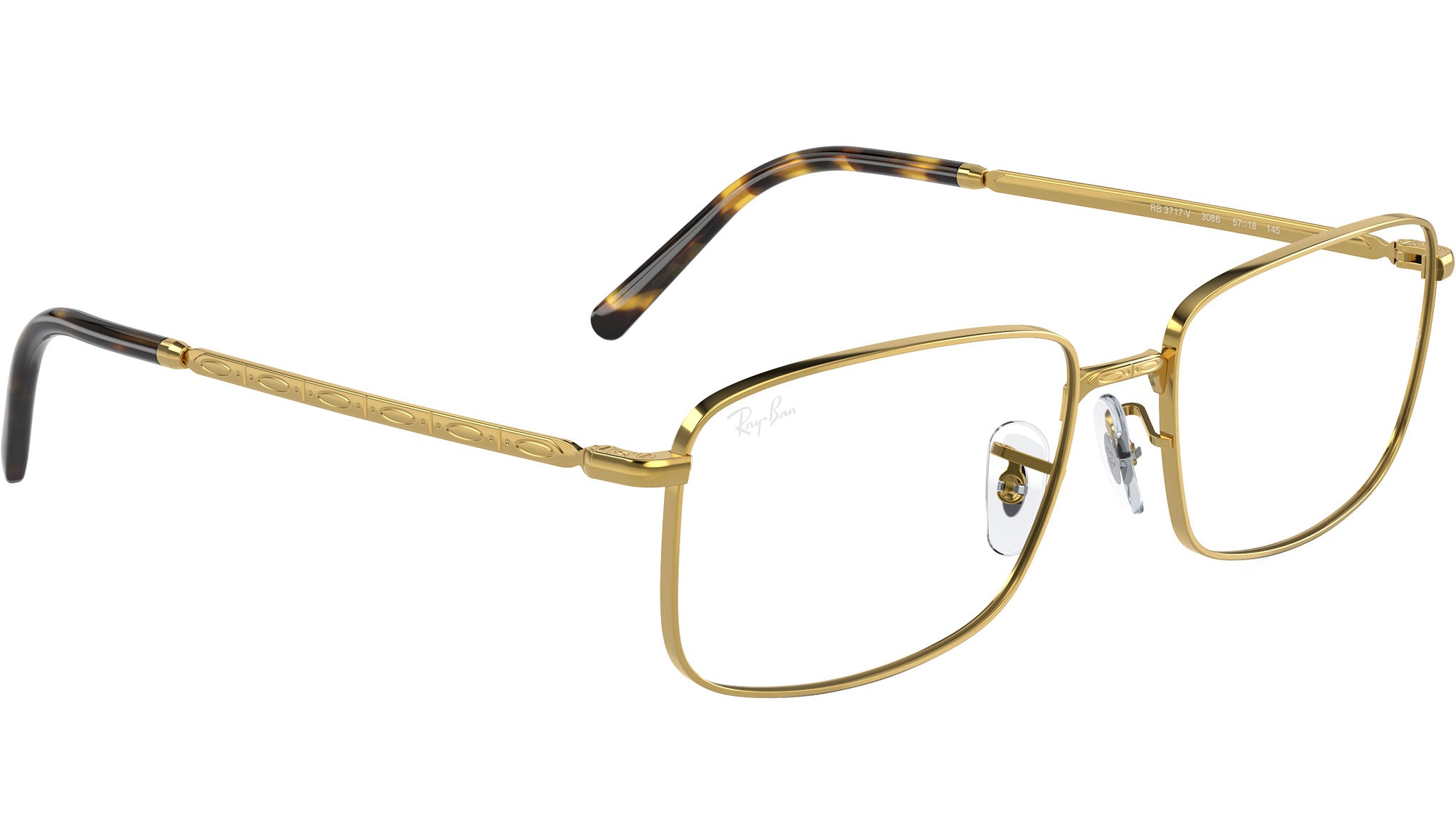 Occhiali da vista Ray-Ban RB3717V Optics RB3717V 3086 unisex con montatura rettangolare in metallo oro e lenti demo. Naselli regolabili. Linea: Evolution. Codice modello: 0RX3717V. Codice colore: 3086. Rivenditore autorizzato Ray-Ban online. Gli occhiali vengono consegnati con custodia e accessori originali e sono coperti dalla garanzia ufficiale di 12 mesi del produttore.