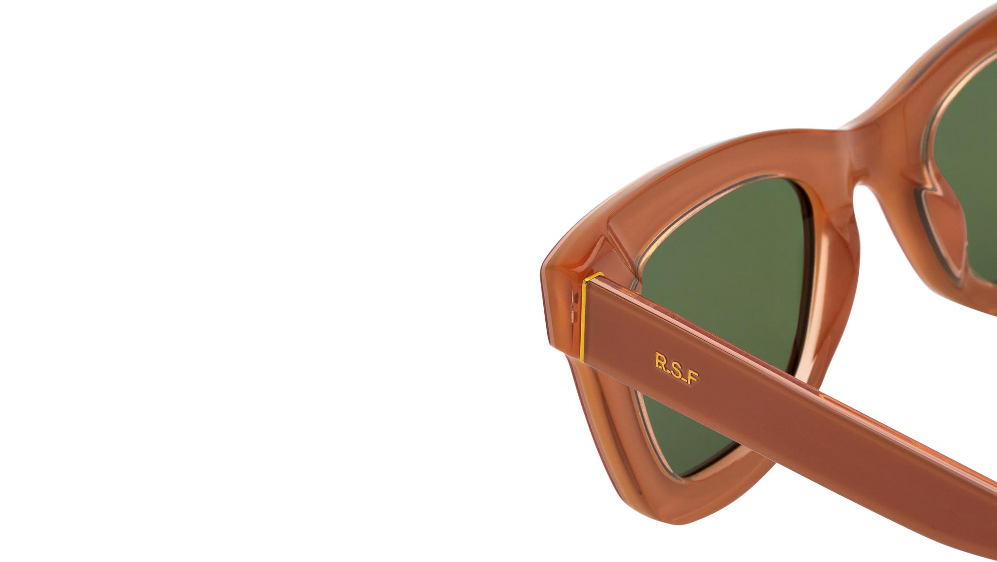 Altura is a unique oversized shape created by reimagining classic pieces with a bold, contemporary approach. The model features a thick acetate construction characterized by squared lenses that were stretched vertically to form an oversized silhouette. Carefully crafted rims and oversized lenses make this determined shape comfortable for everyday use. This version of the Altura comes in a pale pink finish with bottle green lenses. Sizes: R Lens Width: 50 mm. Frame Front: Frame Side: 145 mm. Product Code Size R: CXY