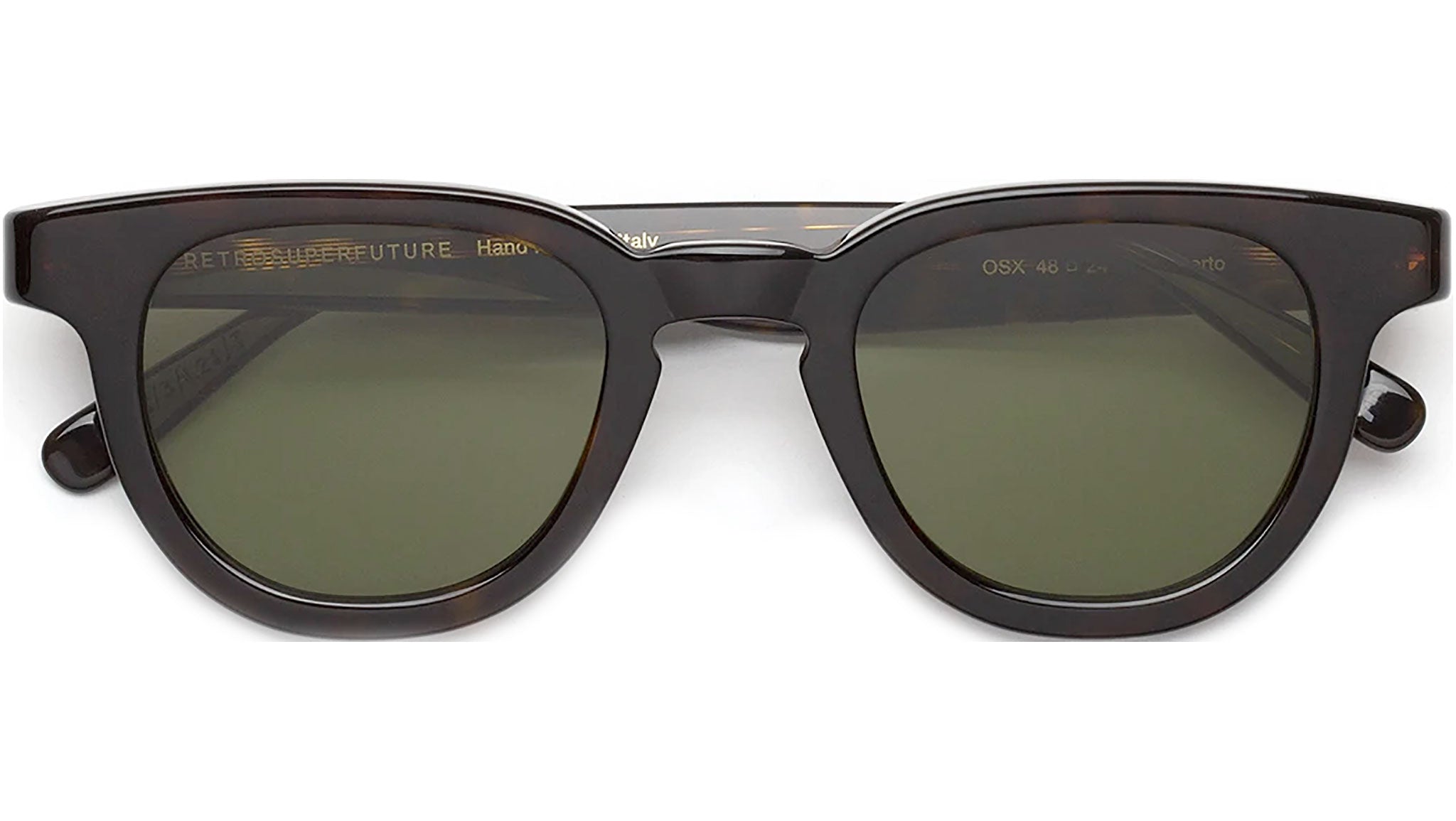 Certo features a thick frame with rounded category 3 lenses and gold detailing on the temples. Case and lens cleaning cloth included. Handmade in Italy.