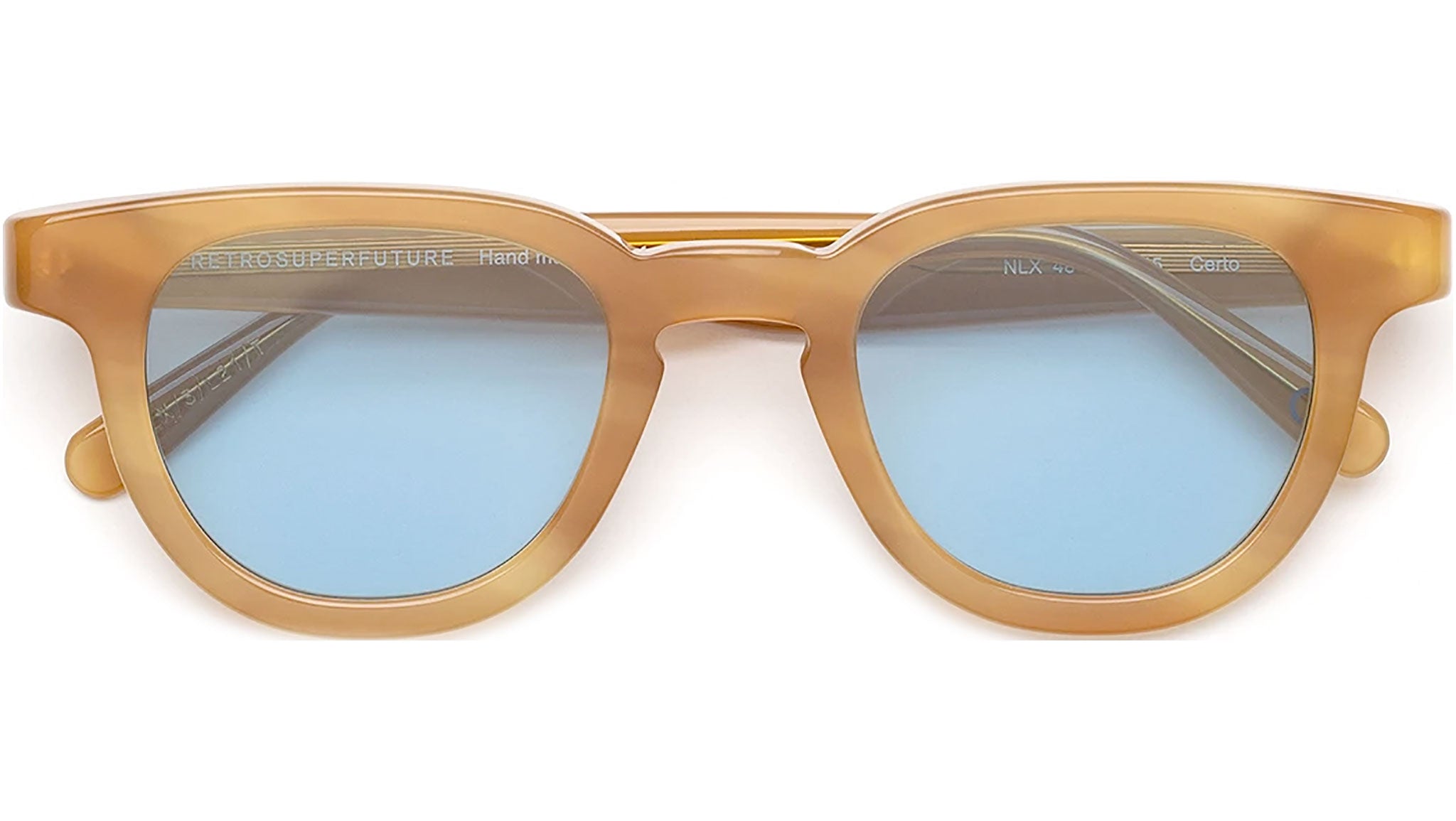 Certo features a thick frame with rounded category 3 lenses and gold detailing on the temples. Case and lens cleaning cloth included. Handmade in Italy.