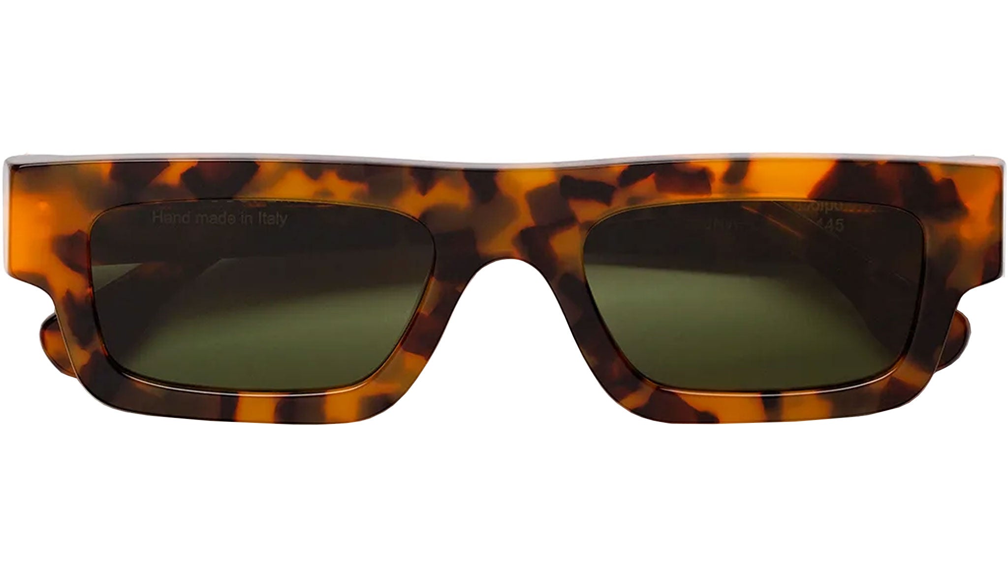 Colpo is an iconic contemporary silhouette that merges vintage references with the current zeitgeist. With its low, compact profile, Colpo is inspired both by chunky 1960s frames as well as futuristic visions. Its straight, sharp brow line makes this a statement piece of eyewear. Colpo will be the ubiquitous, stand-out model of the season, seen on the streets of Milan and Paris, New York and Tokyo. This version of Colpo comes in a spotted Havana acetate with bottle green lenses.