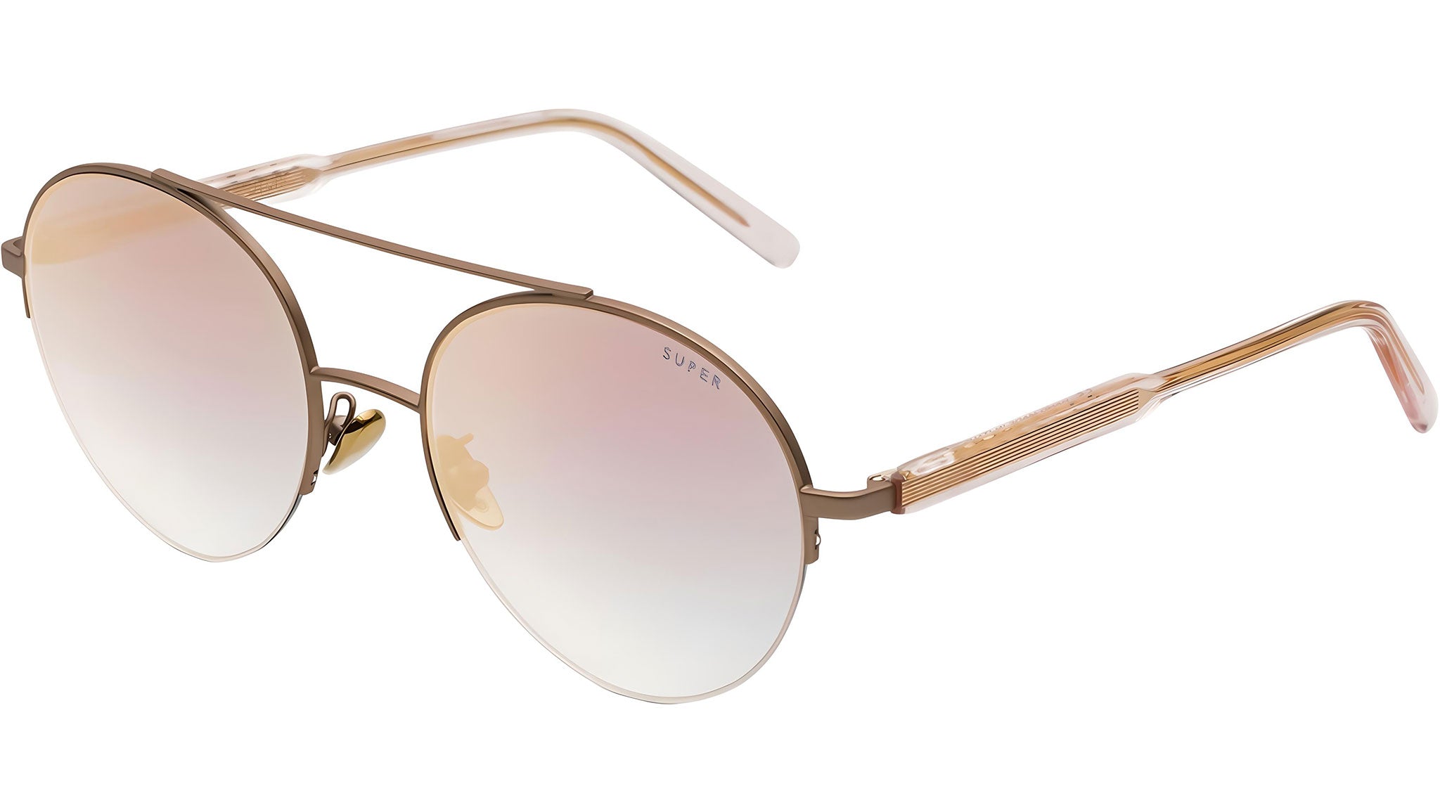 Designed for Fall/Winter 2018 collection, Cooper is an iconic SUPER silhouette characterised by a rounded, geometric design. The model features a lightweight metal structure on the upper part of the frame with a straight, sharp double nose bridge encasing its perfectly rounded lenses. This version of the frame comes with fading deep pink lenses and matching bright pink structure. The box contains a semi-hard case and a cleaning cloth. Size: R Asia. Lens Width: 56mm. Frame Front: 143mm. Frame Side: 145mm. Product Code Size R Asia: AW0