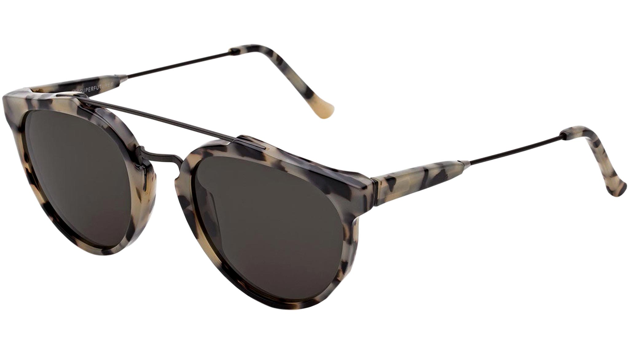 The Giaguaro Puma is an ultra-classic model, combining a unique metal bridge and carefully carved acetate structure into a casual, sophisticated silhouette. This version features spotted black-and-white acetate and lenses by ZEISS in black.