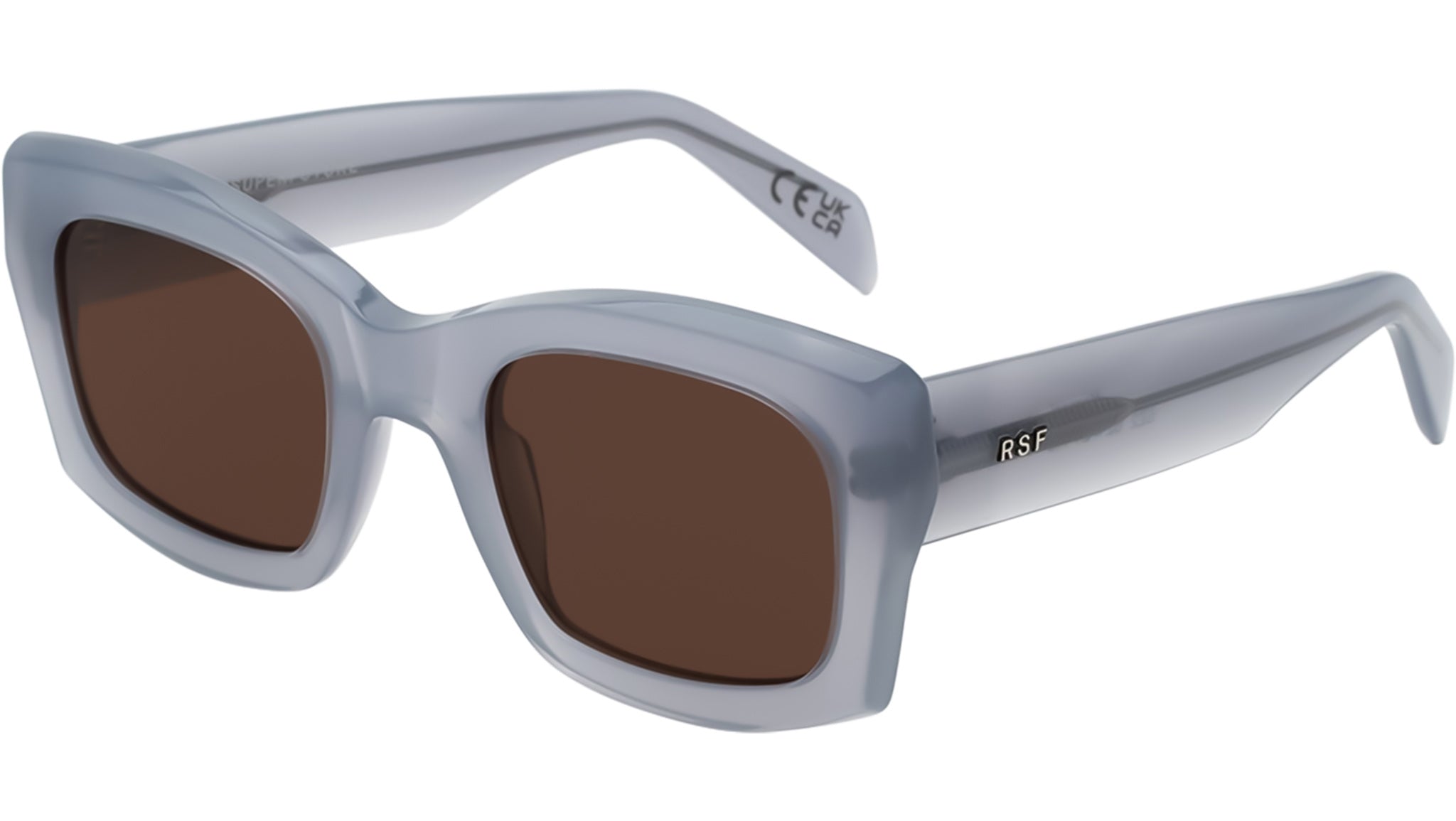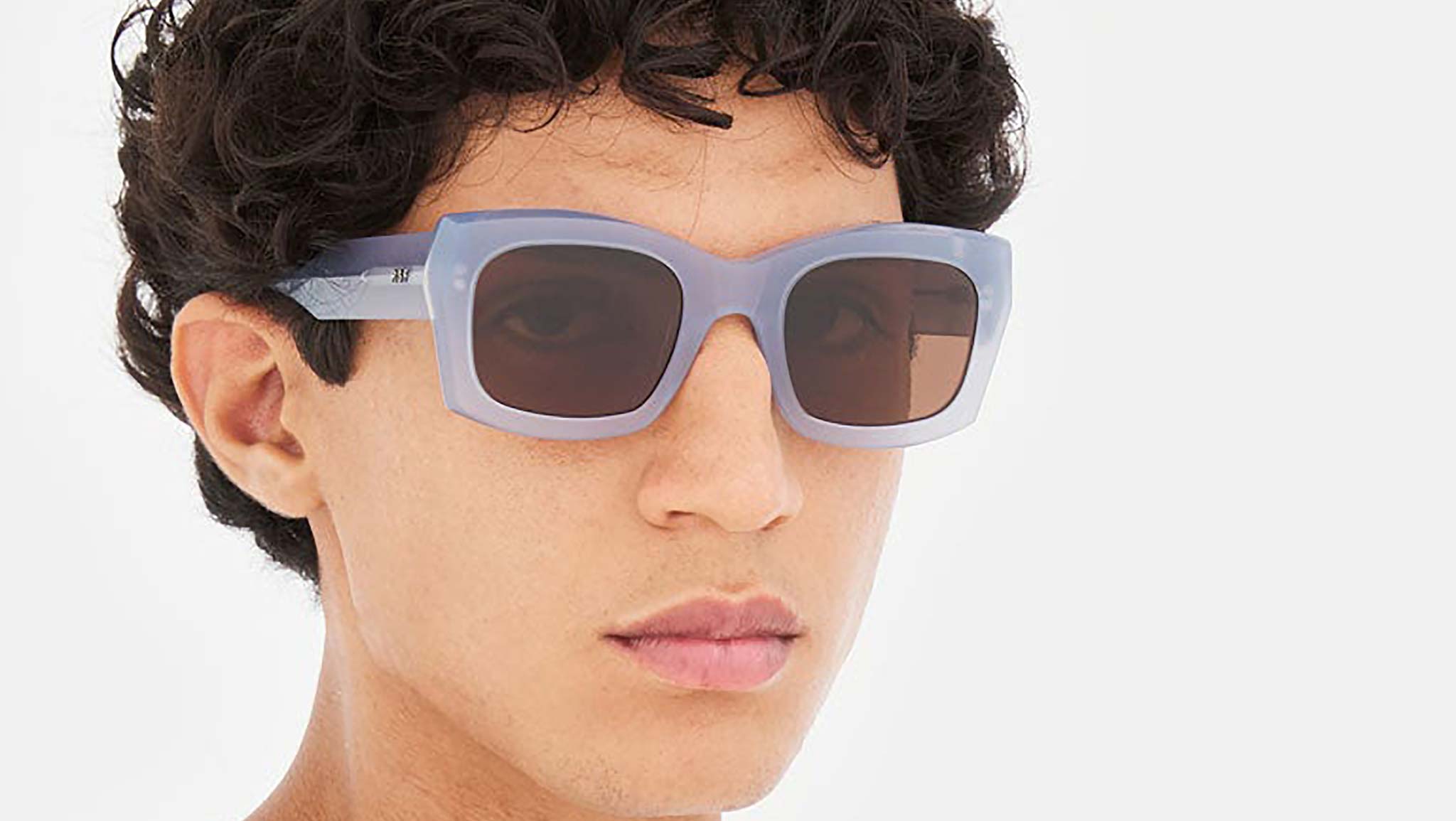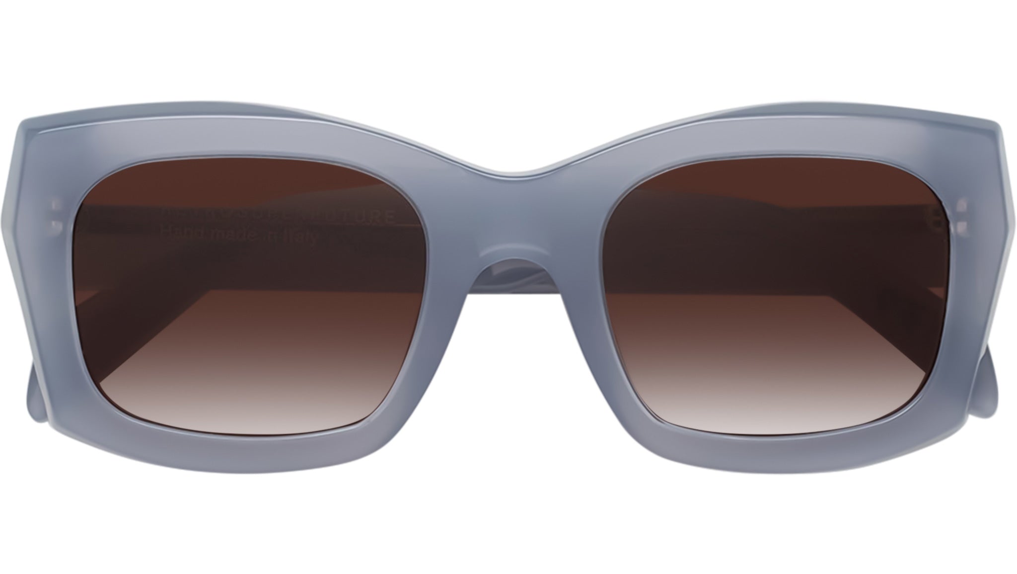 Komori is an oversized, sturdy acetate frame with a unique hyper-geometric design that extends through to the temples. Its soft denim blue acetate frame is paired with distinctive brown lenses for a versatile statement piece. Handcrafted in Italy. Sizes: R. Lens Width: 52 mm. Frame Front: Frame Side: 145 mm. Product Code Size R: 5Z2.