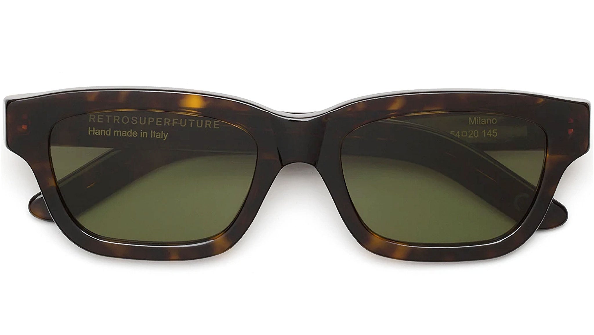 Italian style at its best: RSF is deeply rooted in Milanese fashion heritage celebrating its rich history while offering a fresh take on contemporary aesthetics. A homage to the city and its style, Milano is conceived as a lower, streamlined version of classic squared frames. Its low-riding profile gives a sharp character to the frame, while a slightly curved upper arch adds a distinctive touch for essential style and comfortable fit. This version comes in warm Havana acetate with bottle green lenses.