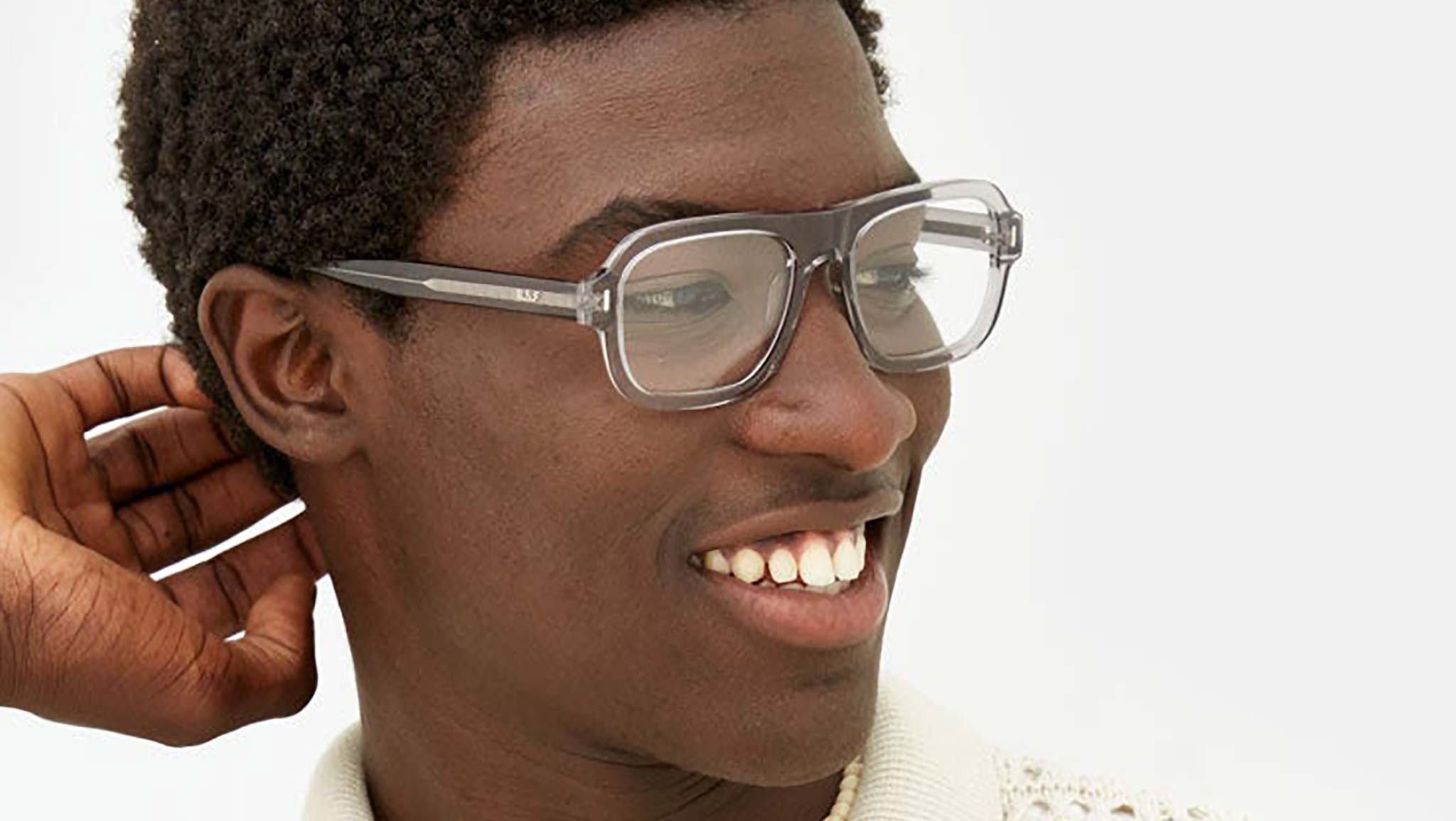 Numero 104 is a bold silhouette with a sharp and straight-forward street edge. Inspired by authentic streetwear culture that is at the root of RSF design, this model features a streamlined shape with distinctive character. Its almost-straight nose bridge gives it a uniquely sharp character, while its thick acetate rims highlight the wide lenses. This version comes in an elegant light grey translucent acetate. Sizes: R. Lens Width: 54 mm. Frame Front:. Frame Side: 145 mm. Product Code Size R: FAM