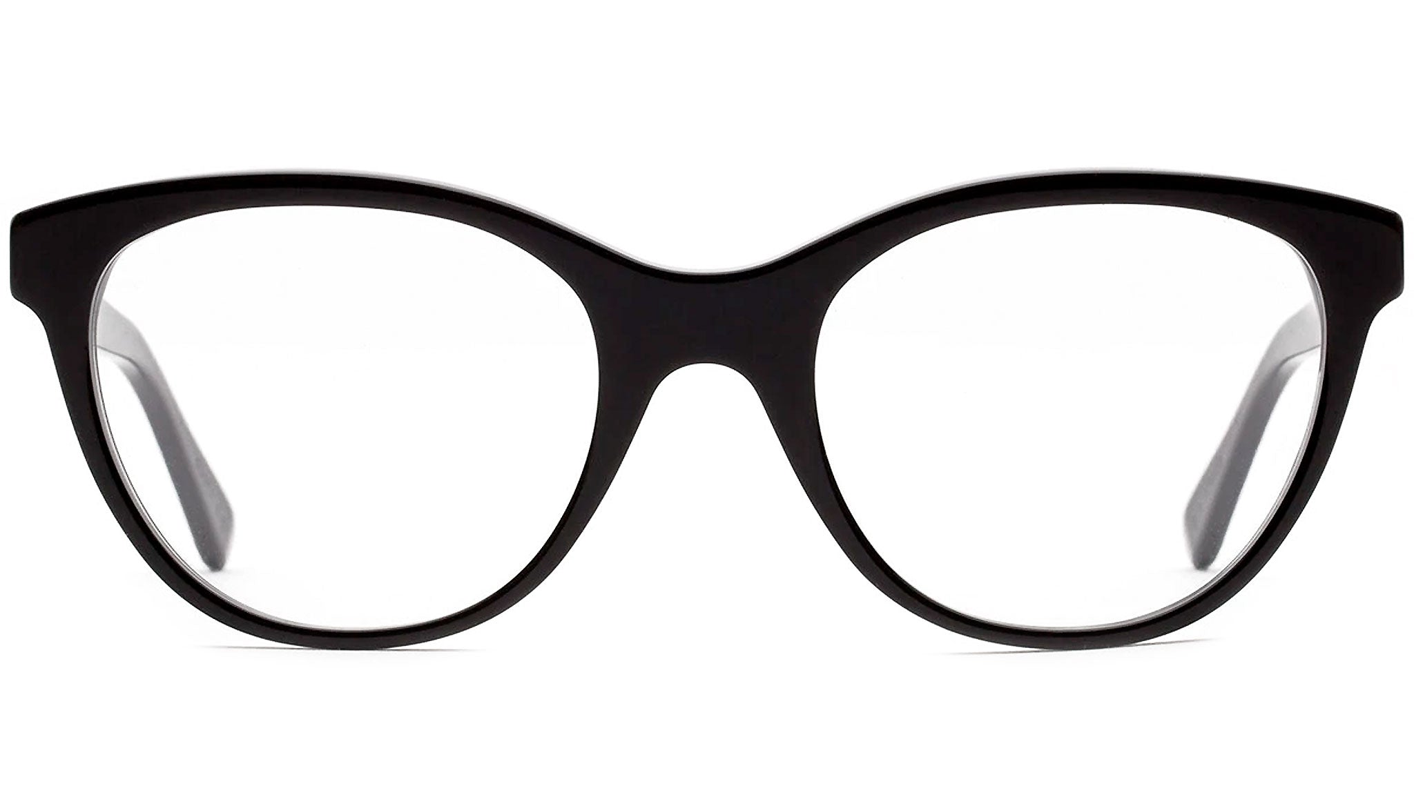 Numero 26 Nero is characterized by an arched upper segment of the frame, perfectly matched with a straightforward lower part of the frame , giving this model its unique contemporary appeal. Available in a black acetate. Prescription lenses not included.