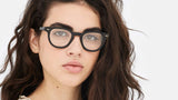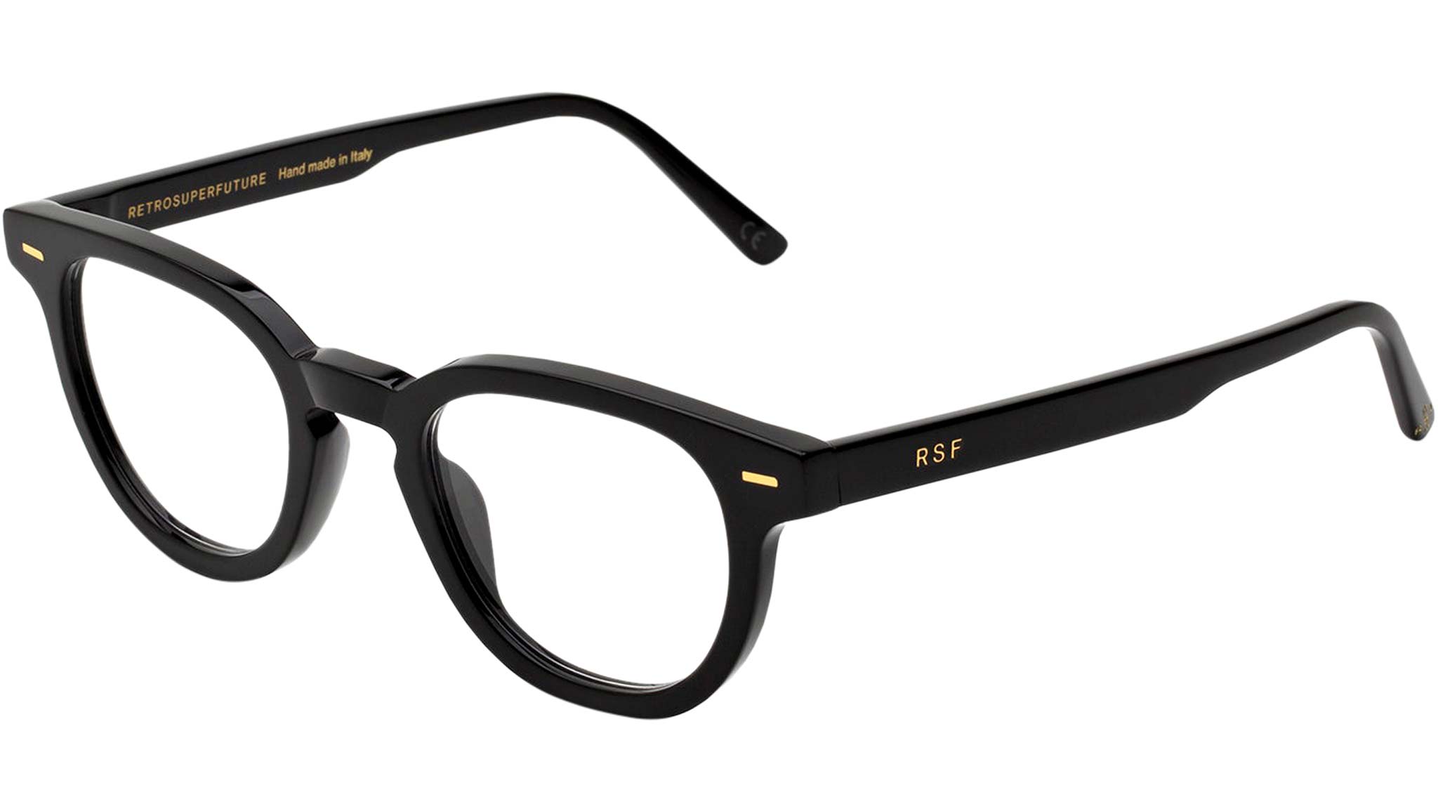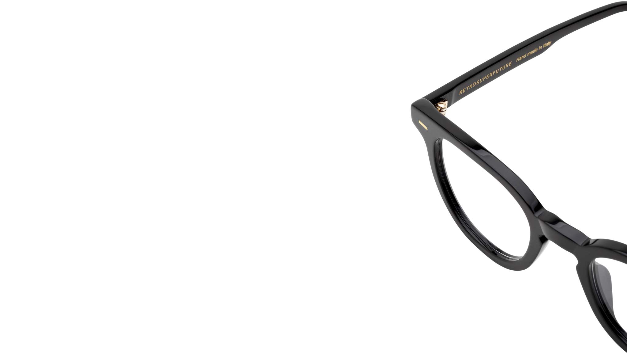 Numero 88 by Retrosuperfuture is a sleek rounded frame for an everyday use. The model features timeless details, such as a keyhole nose-bridge and squared temple tips with rivet decors. Signature acetate construction has been carved around the rims for lightness and comfort in extended daily use. This version comes in black acetate. Prescription lenses not included. Sizes: R Lens Width: 48 mm. Frame Front: 146 mm. Frame Side: 145 mm. Product Code Size R: JDX
