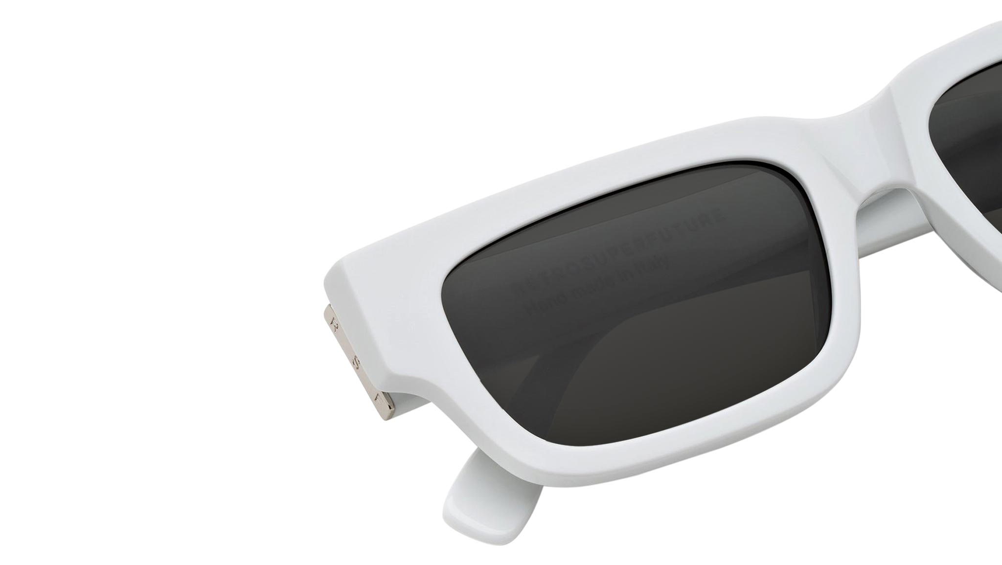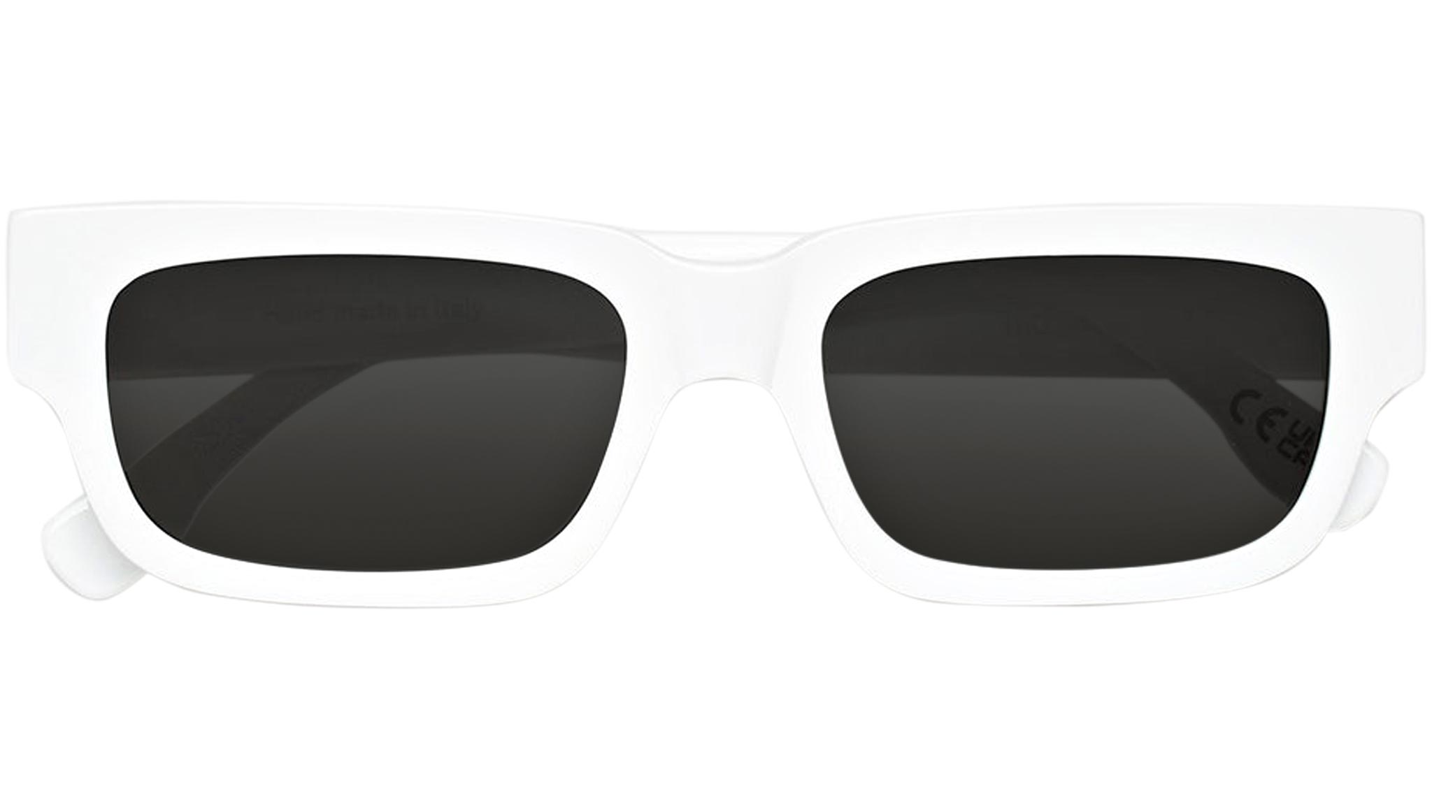 Roma is a timeless bold model that unites the low-riding street-edge with a fresh and sturdy classic attitude. With its thick rims and squared lines, Roma is a fearless piece of eyewear that may be worn on numerous situations, for an all-day-everyday feel. This color way of the Roma features a white acetate paired with smokey lenses. Sizes: R. Lens Width: 54 mm. Frame Front: 146 mm. Frame Side: 145 mm. Product Code Size R: HIG.