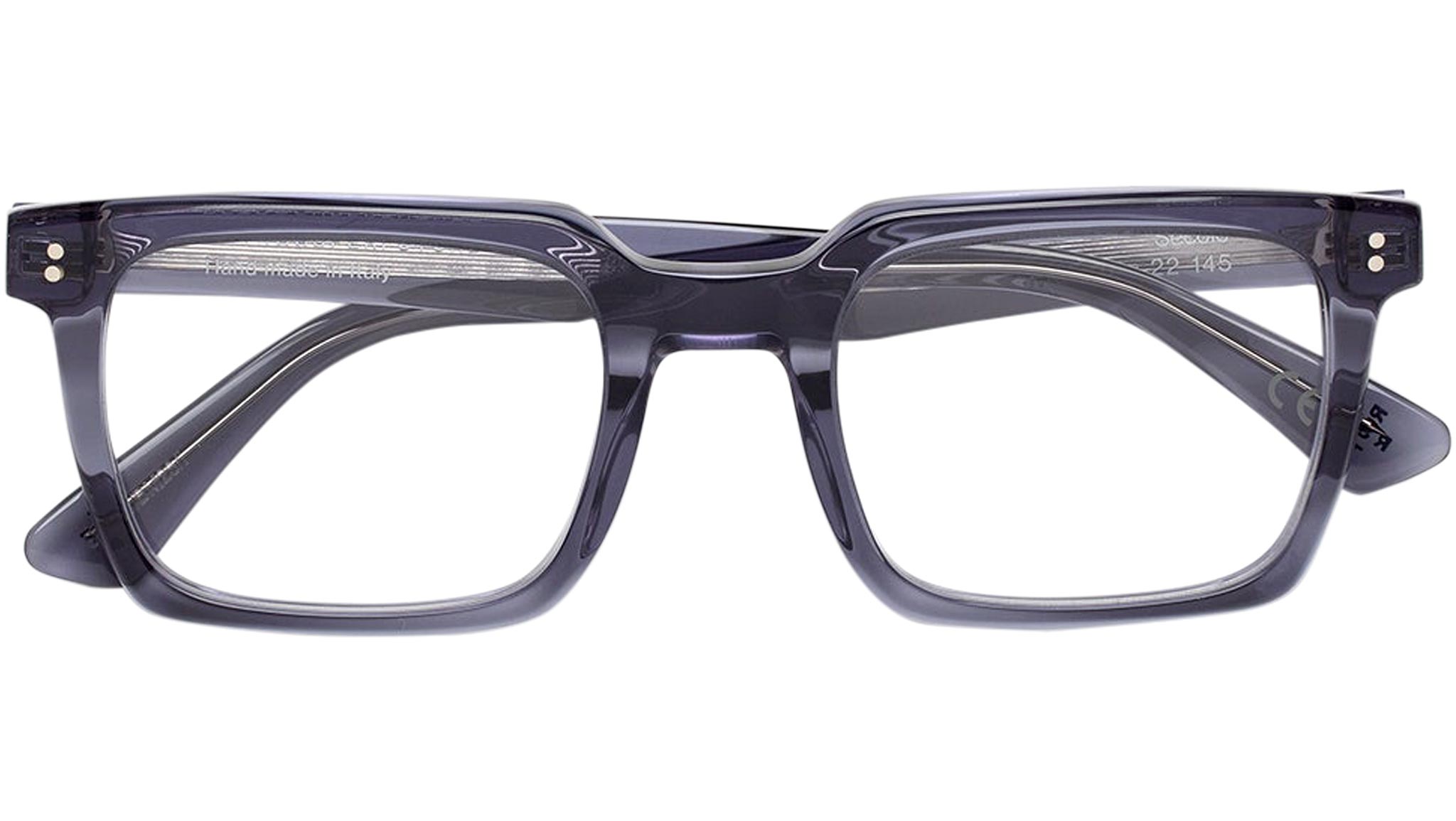 Secolo is an angular, clean shape designed for everyday optical use. A familiar silhouette, Secolo features squared rims with wide lenses for comfortable daily use. Its protruding temple tips feature two metal studs, while the lowered nose-bridge references classic vintage pieces. This version comes in an elegant blue crystal acetate. Sizes: R Lens Width: 51 mm. Frame Front: Frame Side: 145 mm. Product Code Size R: SQS