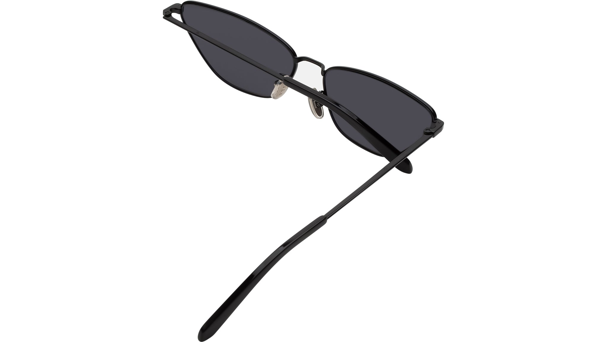 Spillo flaunts a true minimalist design accentuated by elegant, sleek lines that offer a refined aesthetic. Its clean-cut custom metal frame is powder-coated in black and paired with black mineral glass lenses by Barberini. Custom designed adjustable nose pads and sleek acetate temples allow for a tailored comfortable fit. Handcrafted in Italy. Sizes: R. Lens Width: 61 mm. Frame Front: Frame Side: 140 mm. Product Code Size R: UNJ.