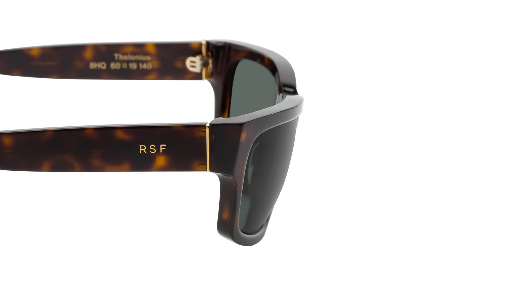Thelonius stretches a classic acetate frame into an sports influenced semi wrap around story. With its signature RSF sturdy acetate build, this frame crosses over on multiple uses and functions with technical, classic as well as street-infused languages. This version of the Thelonius comes in a rich and elegant dark tortoise acetate paired with classic green lenses. Handcrafted in Italy. Sizes: R. Lens Width: 60 mm. Frame Front: Frame Side: 140 mm. Product Code Size R: 8HQ.